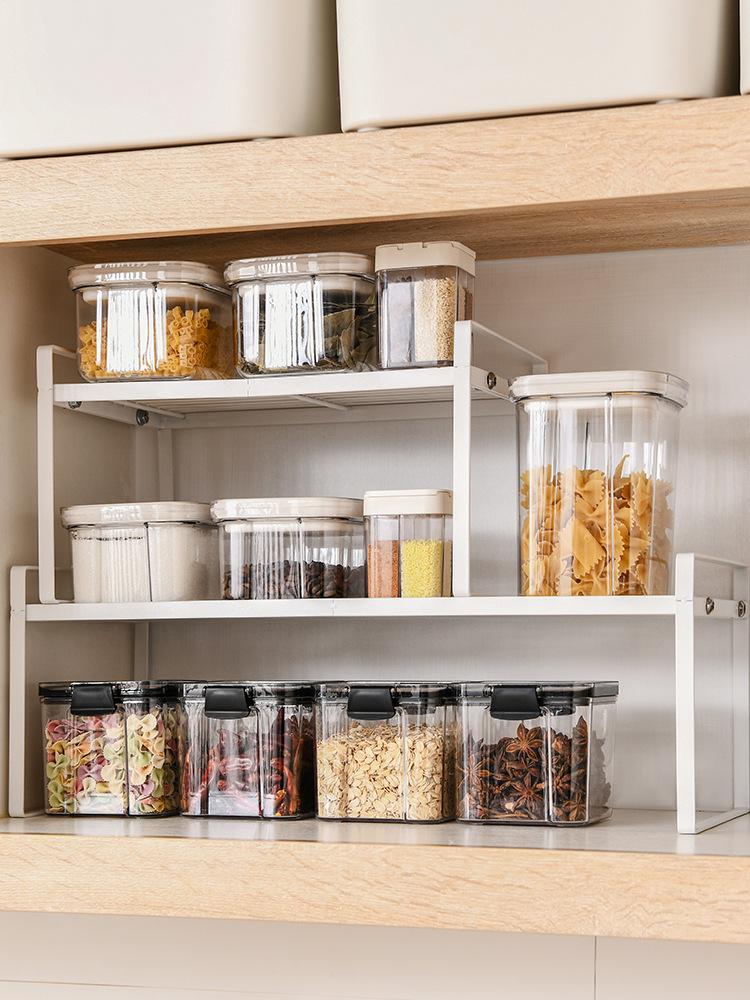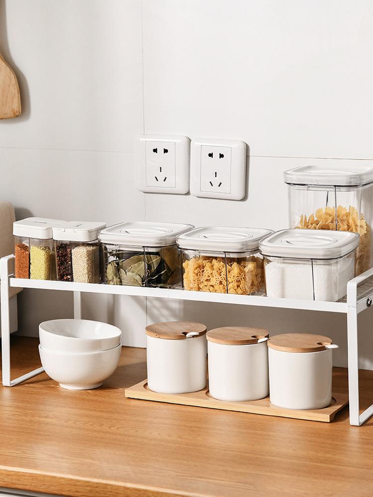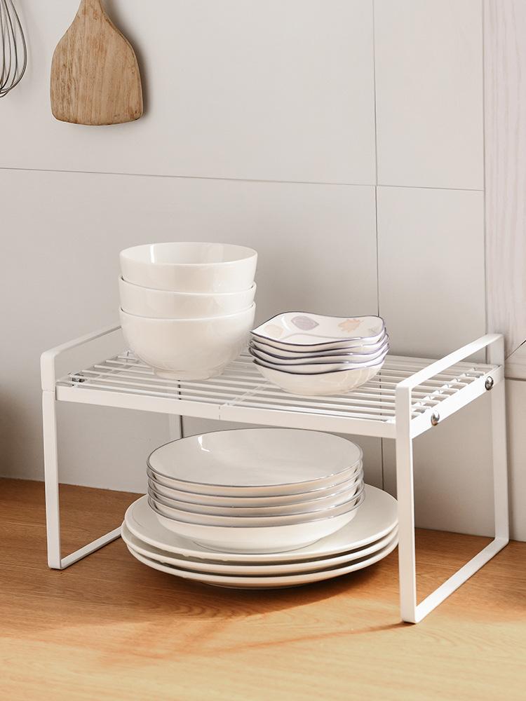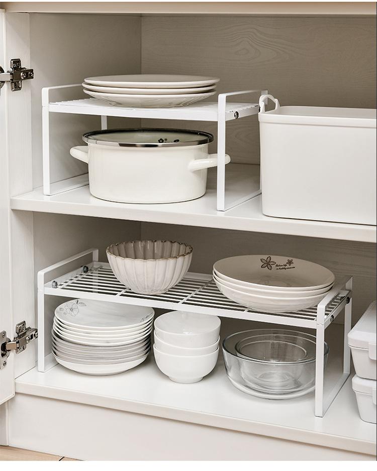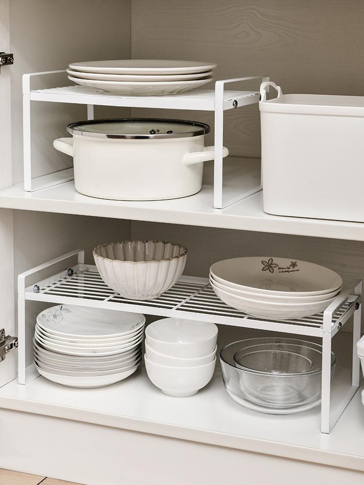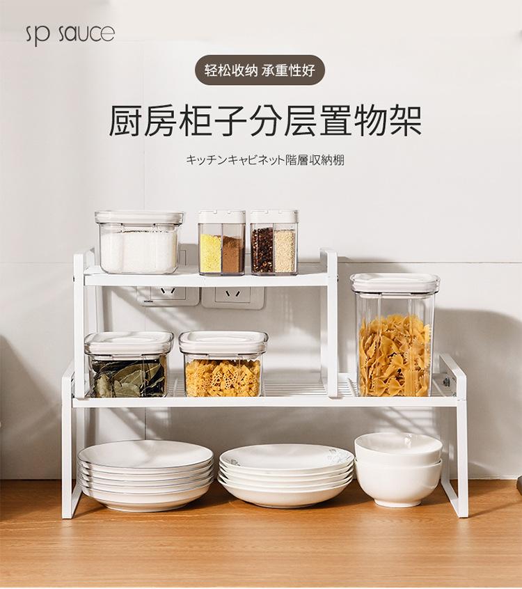 Estante de almacenamiento en capas blanco para encimera de cocina, gabinete divisor, plato de condimentos, estante para ollas, estante de almacenamiento de escritorio