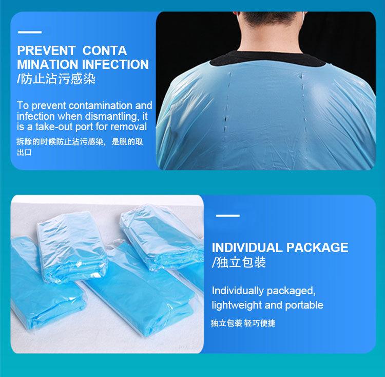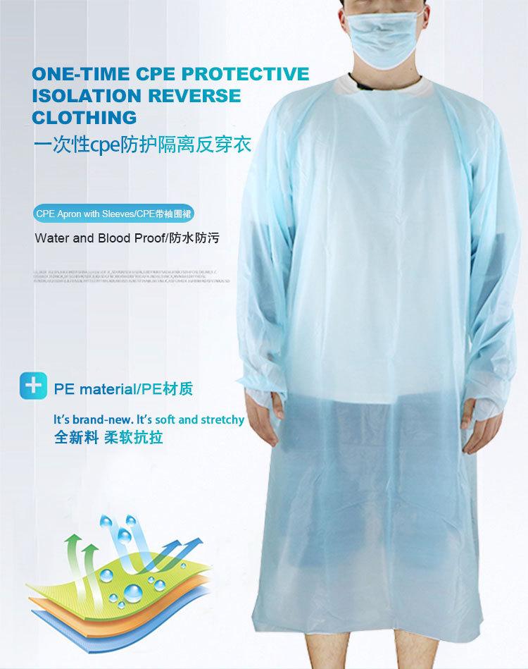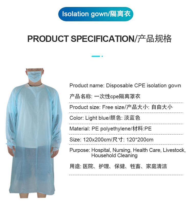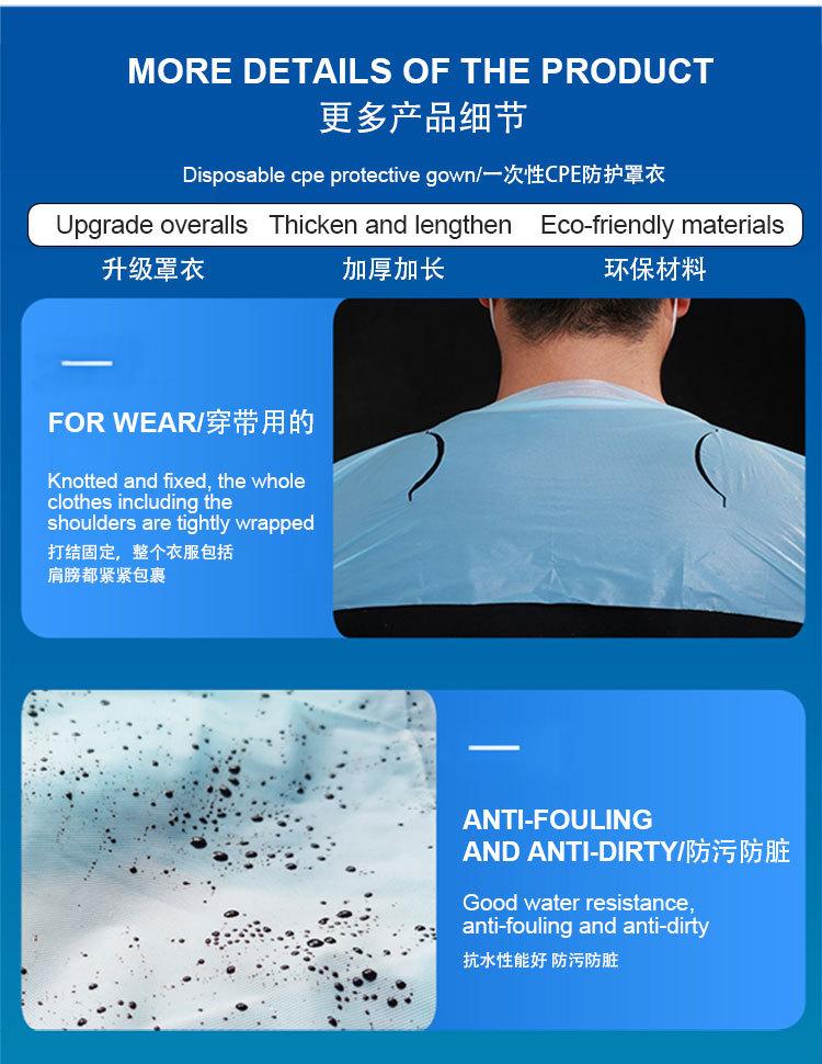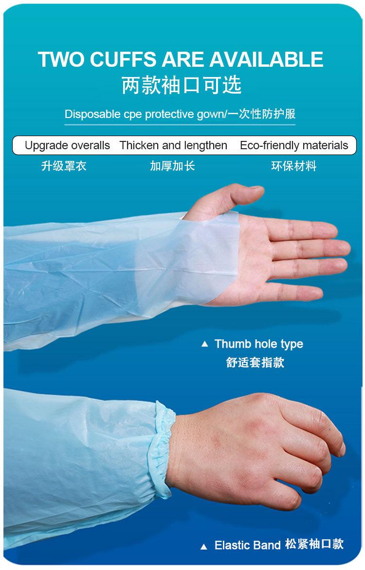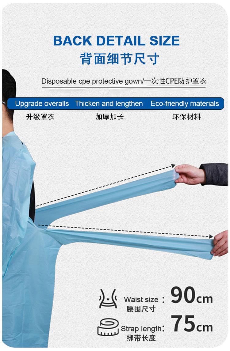 Bata protectora de CPE, bata de aislamiento, desechable, para belleza, alimentación, trabajo, delantal protector de plástico de manga larga.