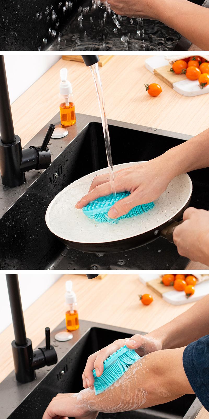 Cepillo de baño multifuncional de silicona de doble cara para niños, cepillo de baño, cepillo de cocina para lavar platos, cepillo de sartén, cepillo de limpieza