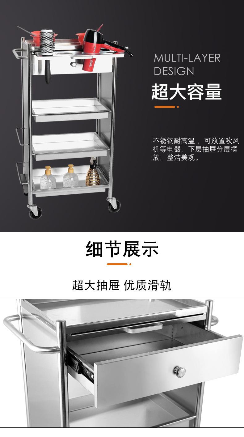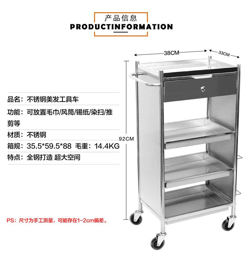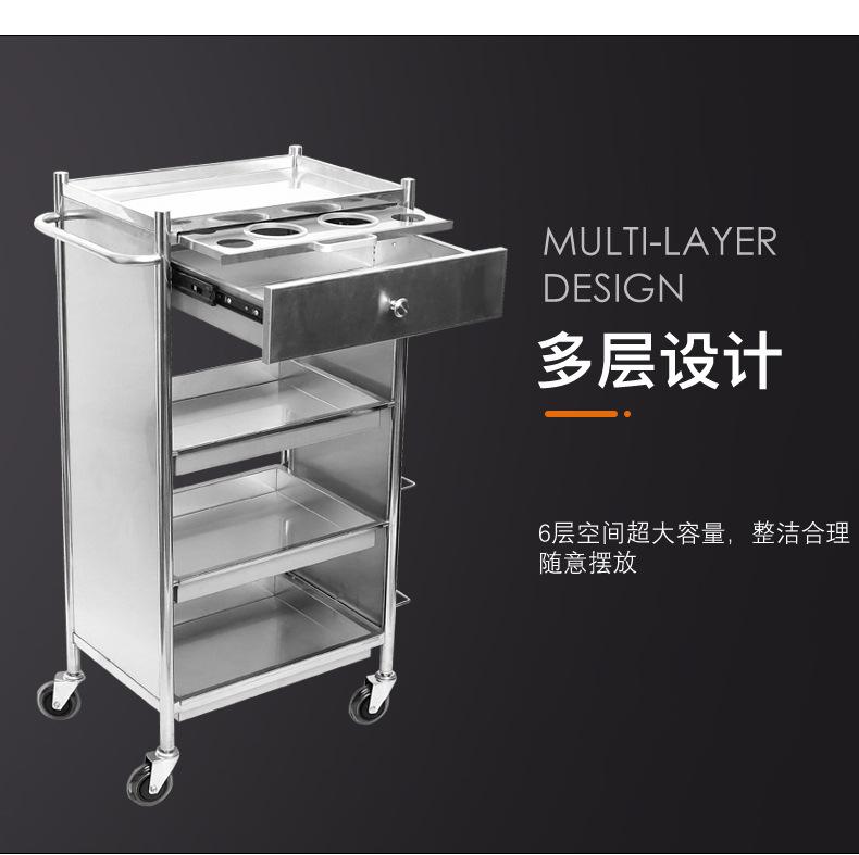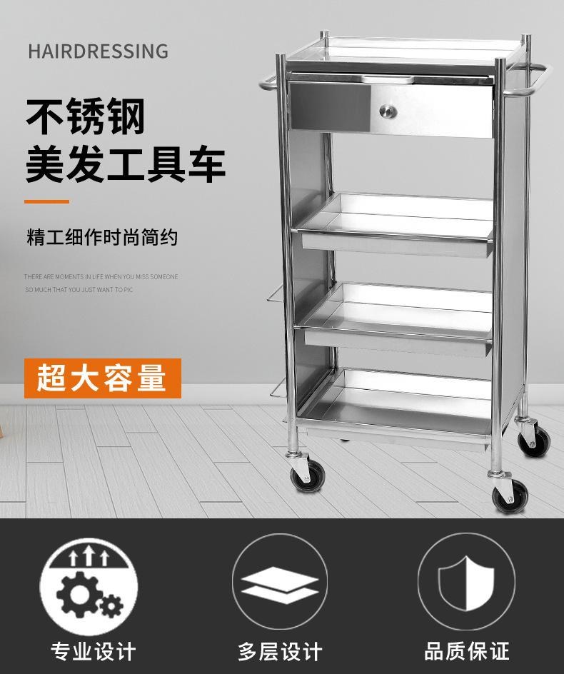 Estante de almacenamiento de instrumentos para salón de belleza al por mayor, carrito de belleza de acero inoxidable de gran capacidad, carrito de peluquería multifuncional