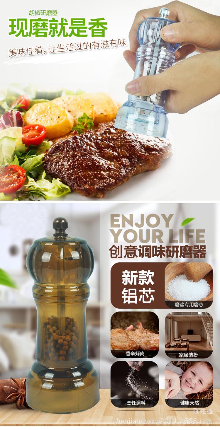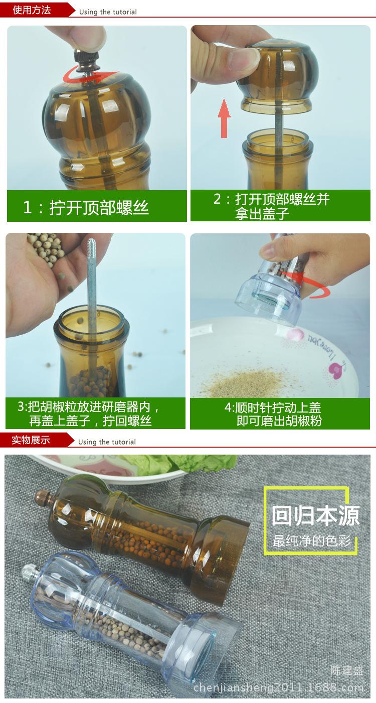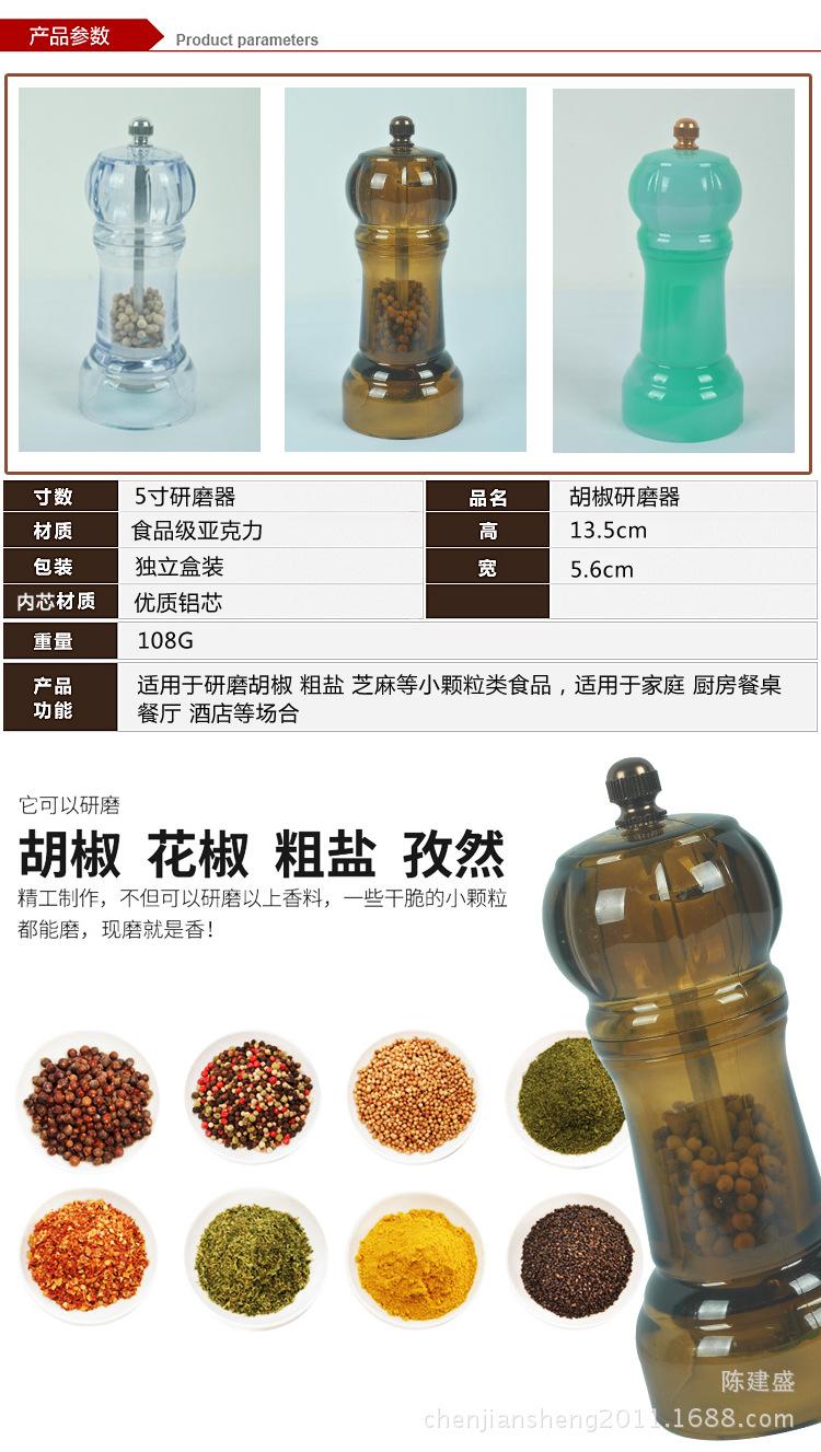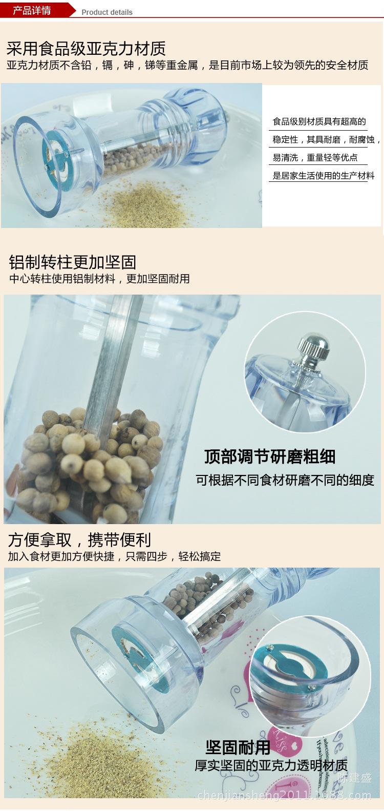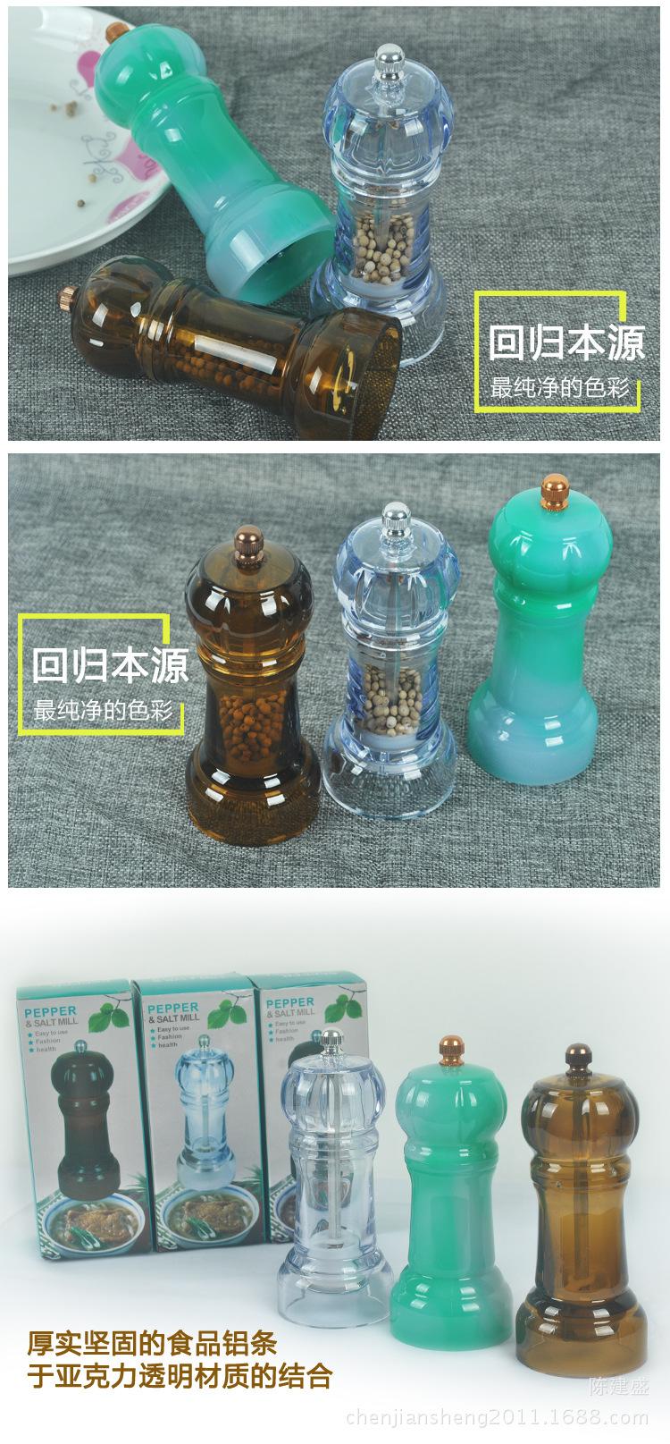 Material del producto: carcasa acrílica + núcleo de molienda de cerámica + marco de acero inoxidable
