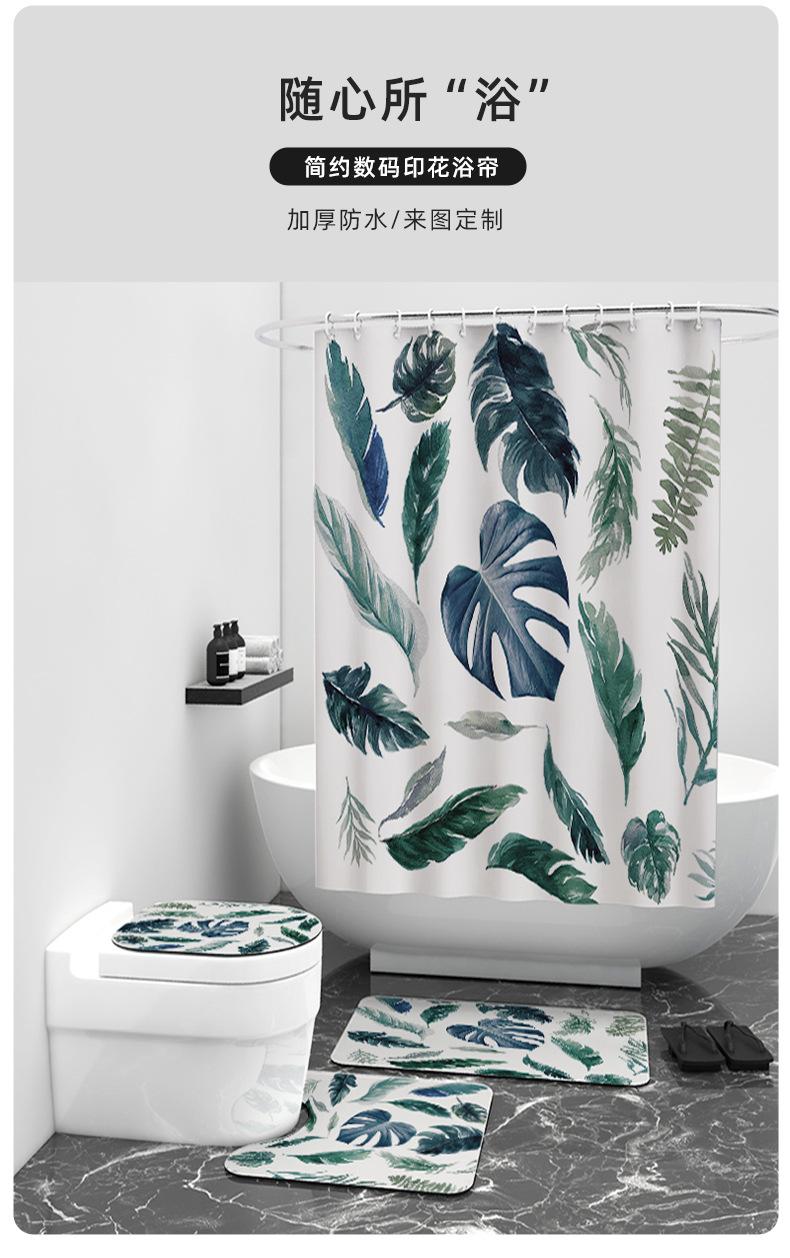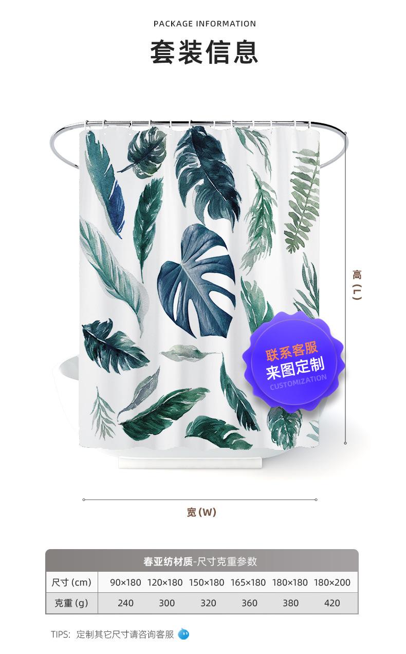 Cortina de Ducha Simple con Patrón de Hojas para Baño, Cortina de Ducha Impermeable de Poliéster Engrosado, Suministro Directo de la Fábrica de Origen, Tela Impermeable