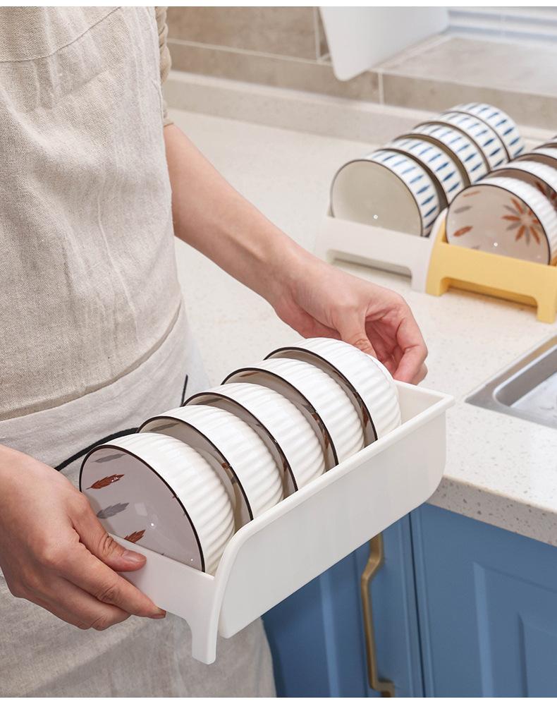 Gabinete caja de almacenamiento de vajilla de cocina plástico doméstico sin tapa estante de almacenamiento de una sola capa escurridor de platos y cuencos