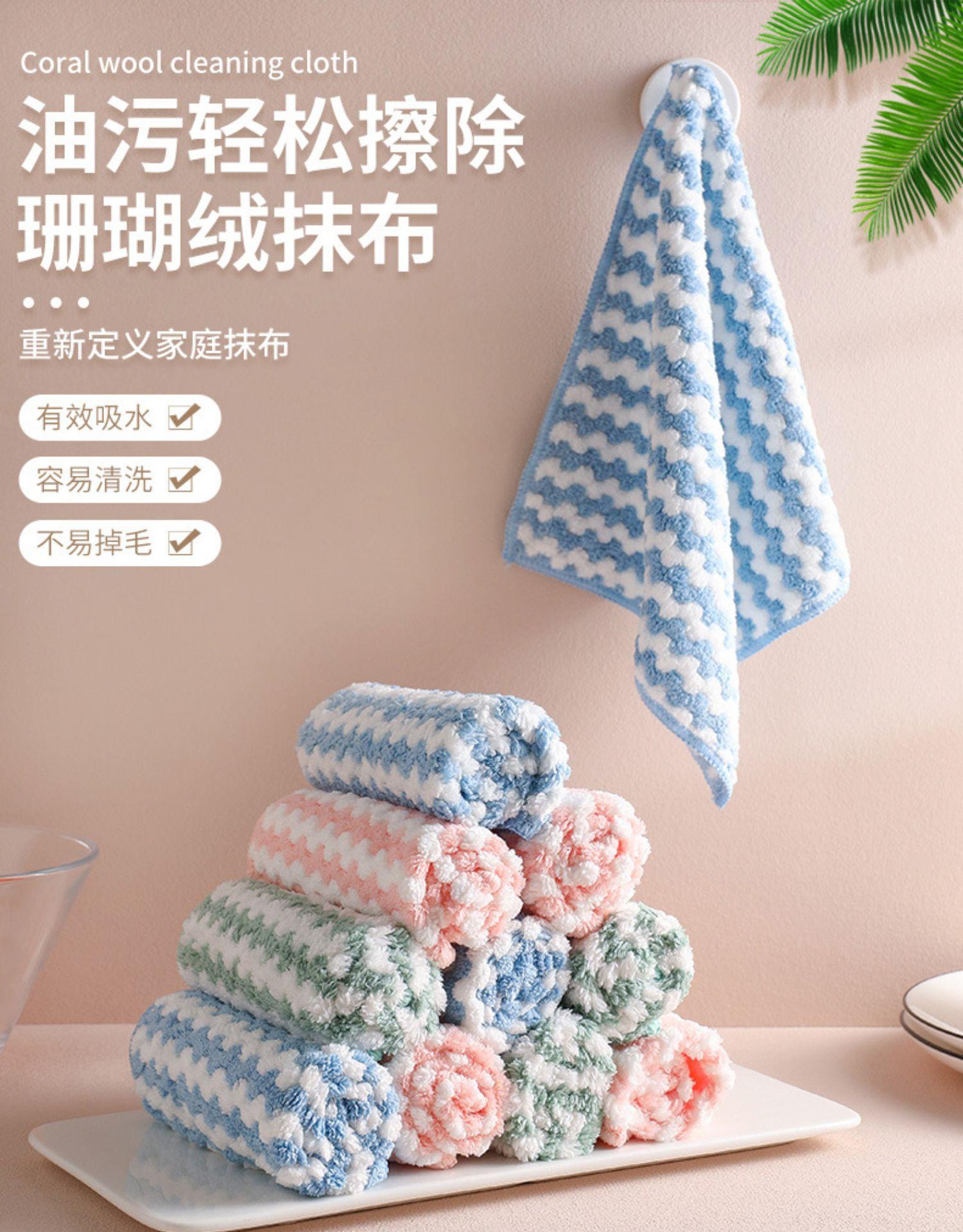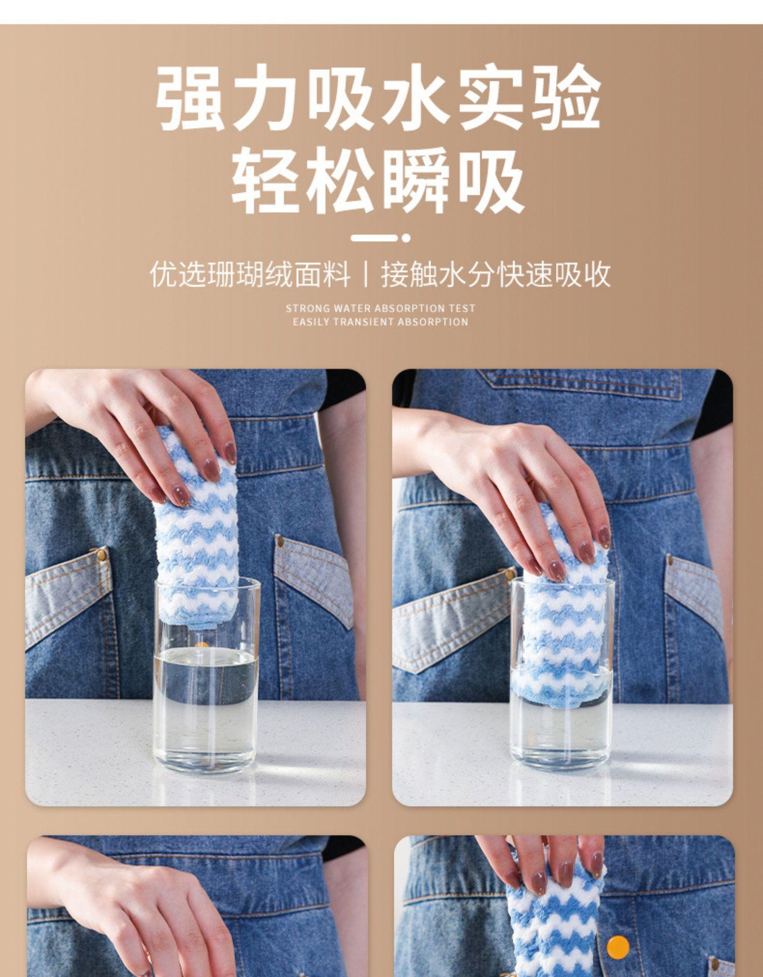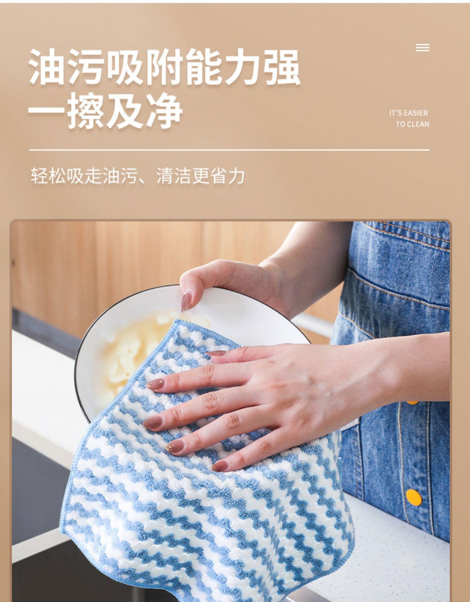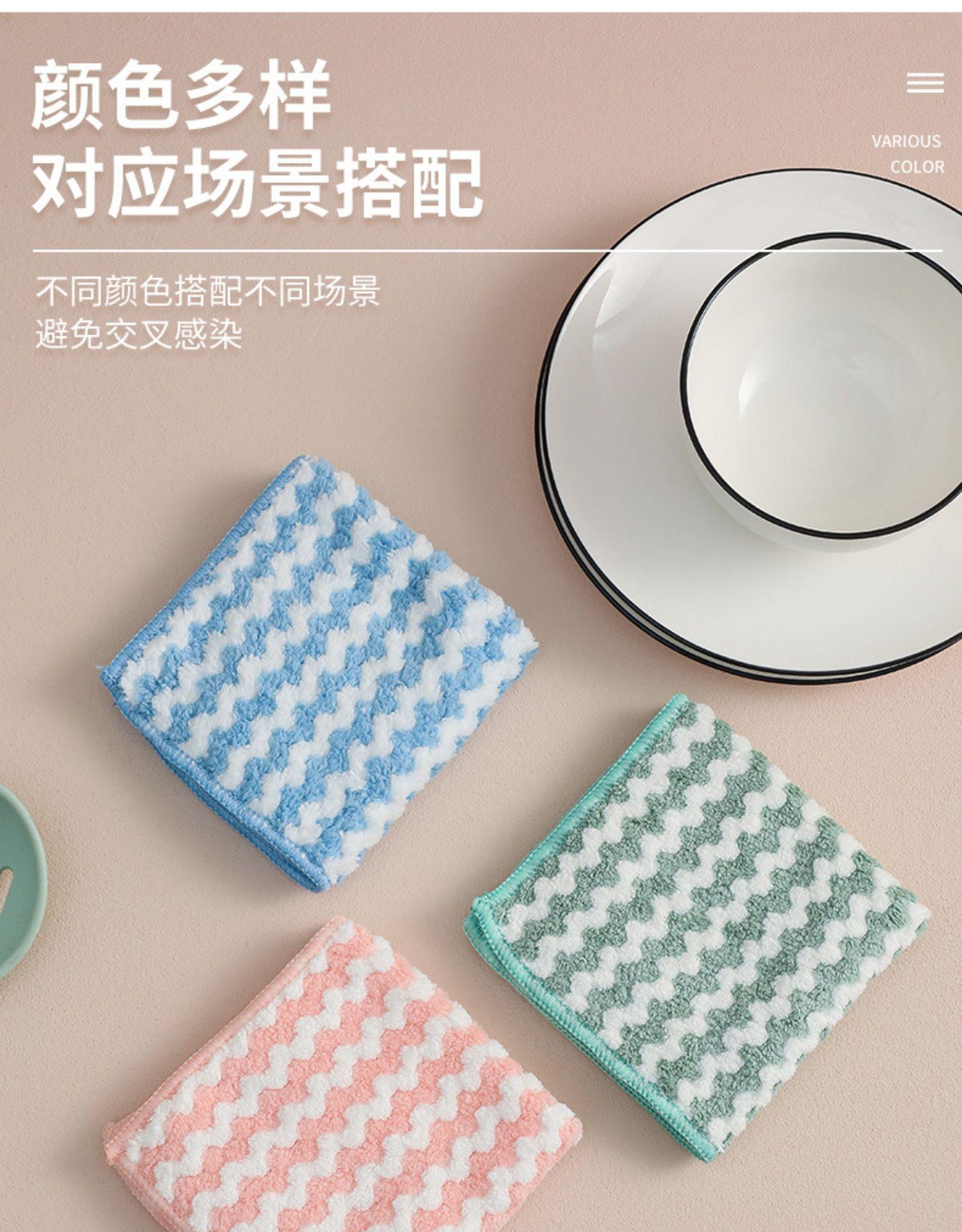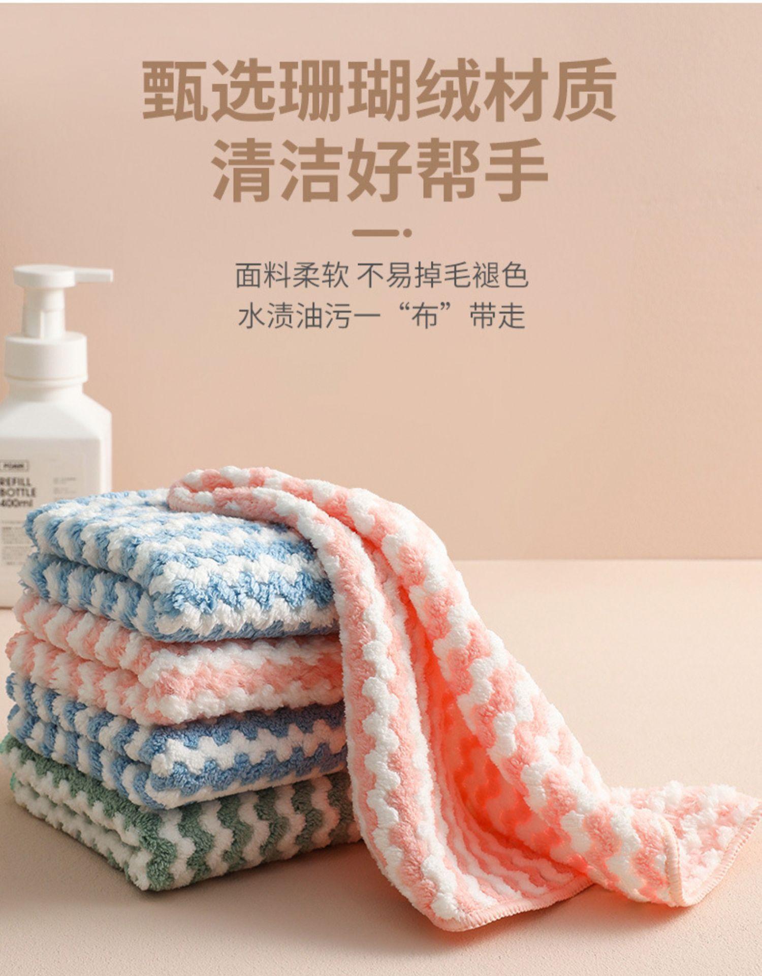 Paño de cocina jacquard de vellón coral, absorbente de aceite y agua, absorbente catiónico grueso, no absorbe fácilmente el aceite, paño ondulado para platos.