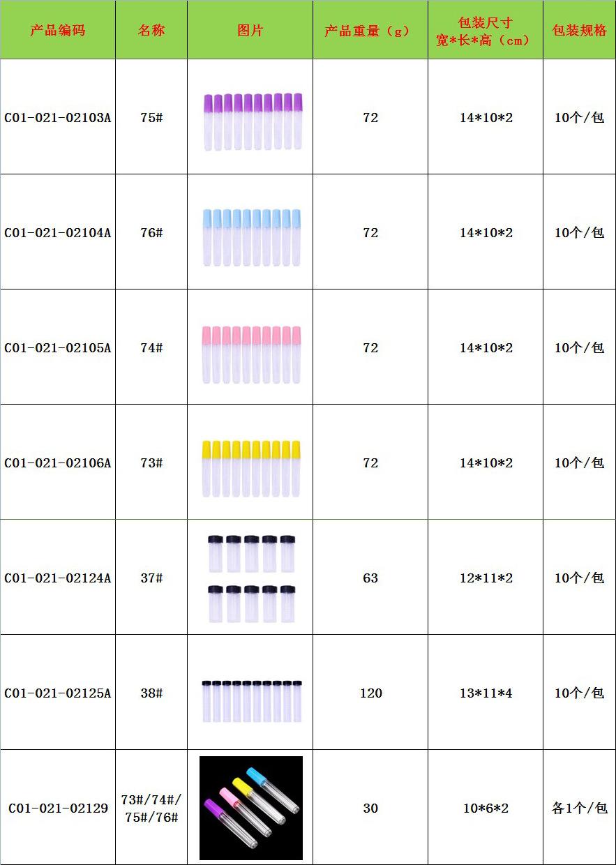 Tamaño del producto: diámetro 2*altura 10cm Código: 75# Especificación de embalaje: 10 piezas/paquete