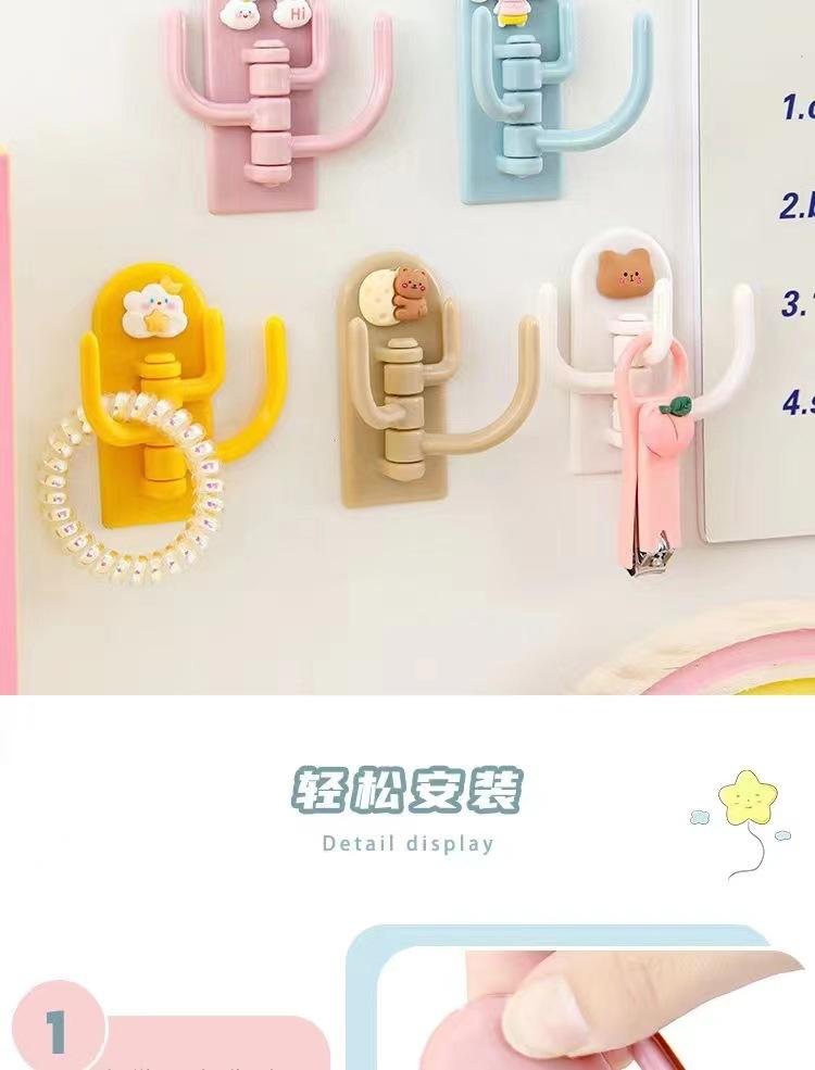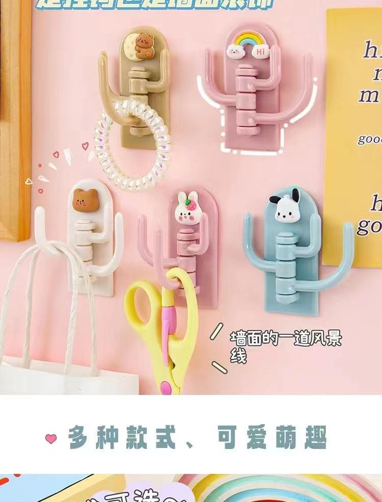 Gancho triangular de dibujos animados creativo, lindo gancho adhesivo sin costuras para dormitorio de estudiantes, gancho para colgar en la pared o la puerta, gancho para llaves