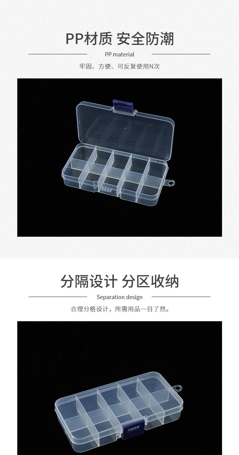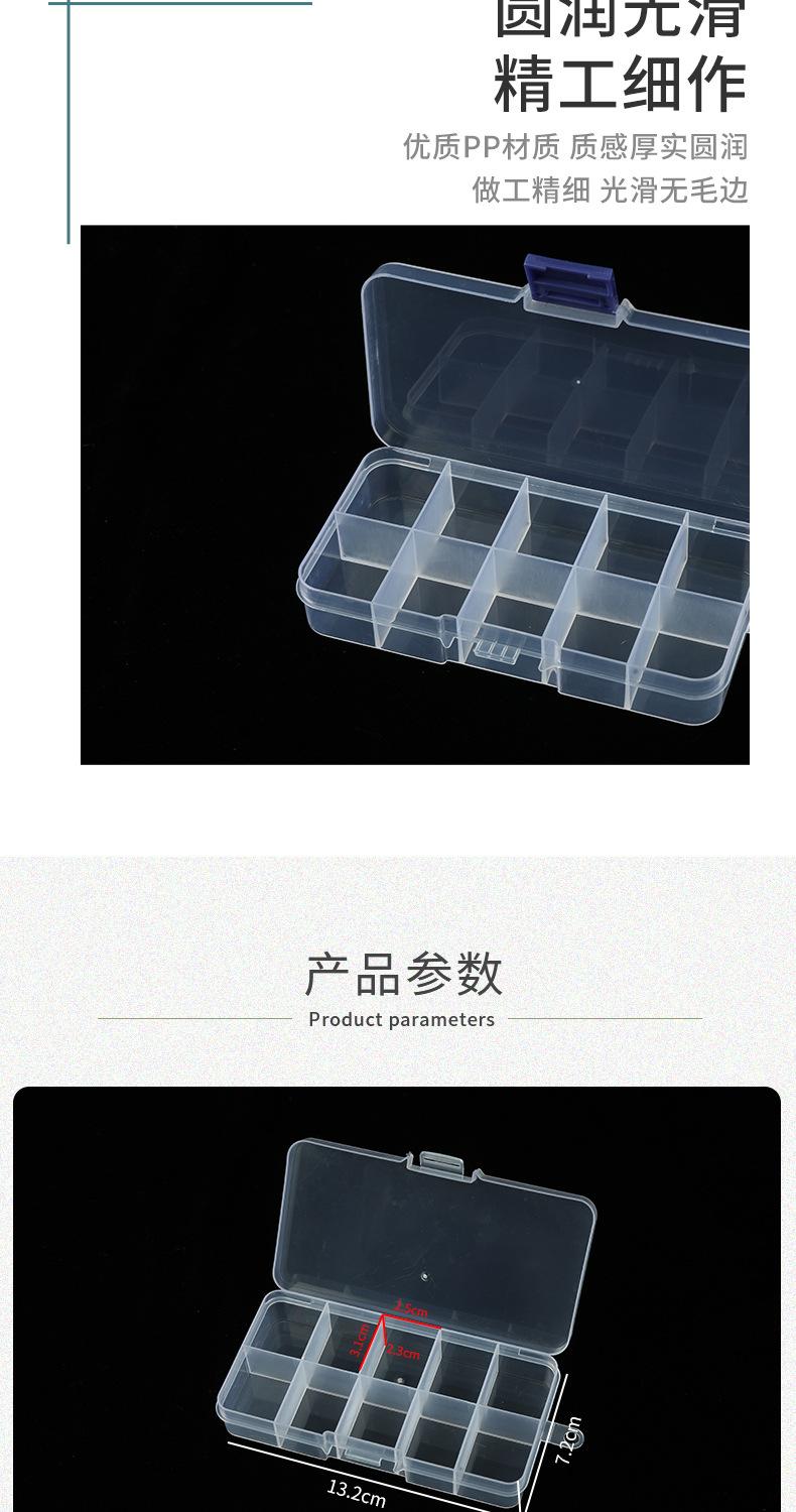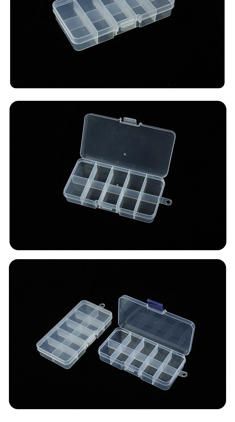 Caja de almacenamiento de plástico transparente con tapa y 10 compartimentos pequeños para joyas, cosméticos y acabados, fabricantes de cajas de plástico al por mayor.