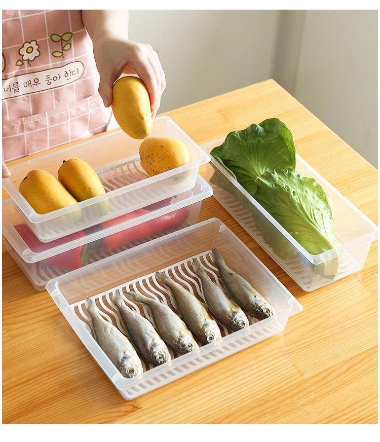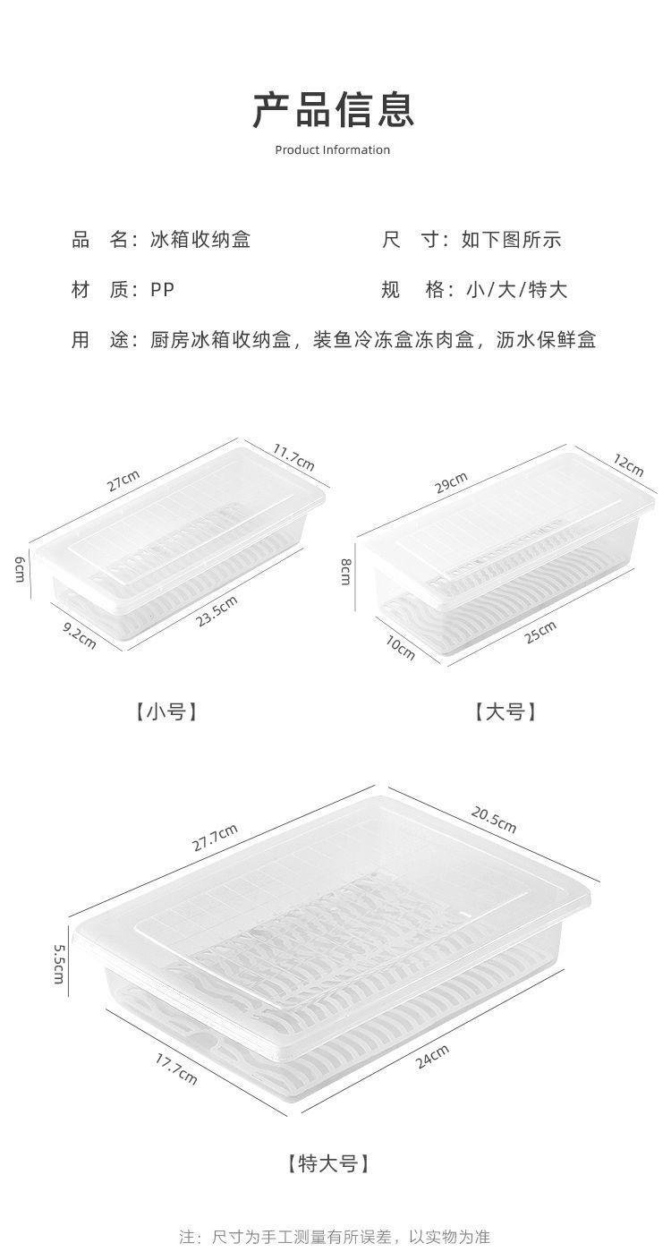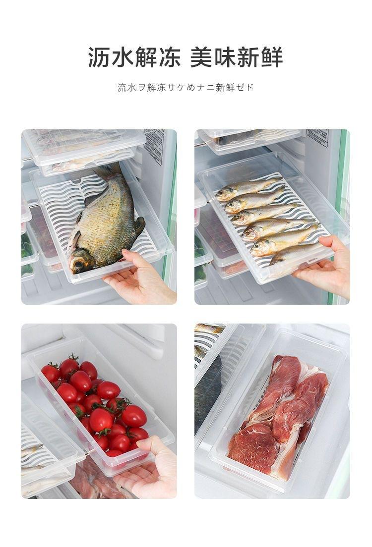 Refrigerador Caja de Drenaje para Pescado Congelado Caja de Almacenamiento de Clasificación de Cocina Plástico Rectangular Caja de Almacenamiento Refrigerada con Tapa