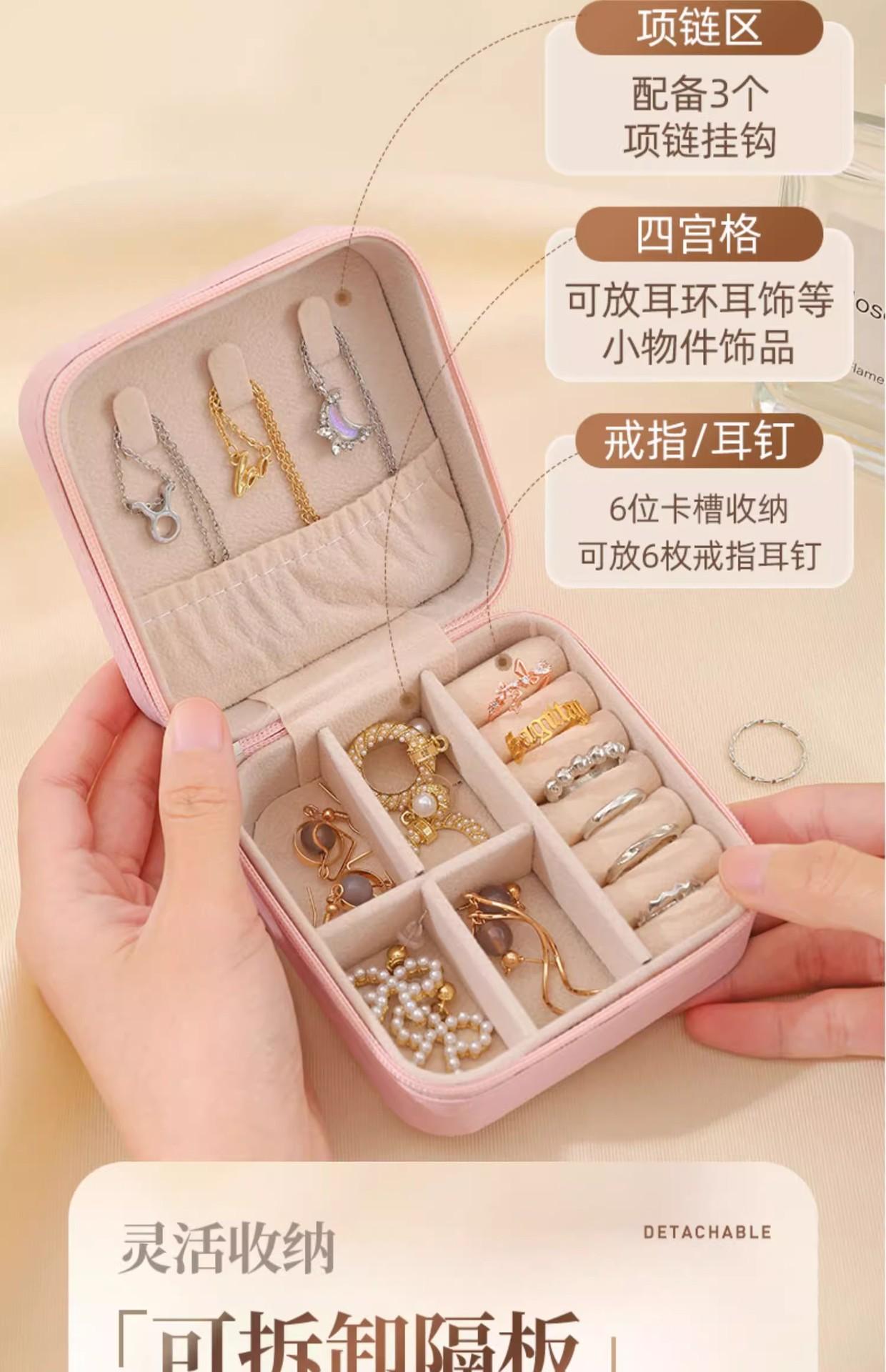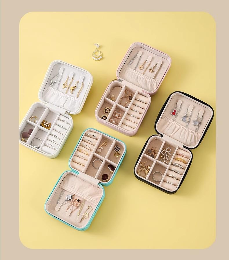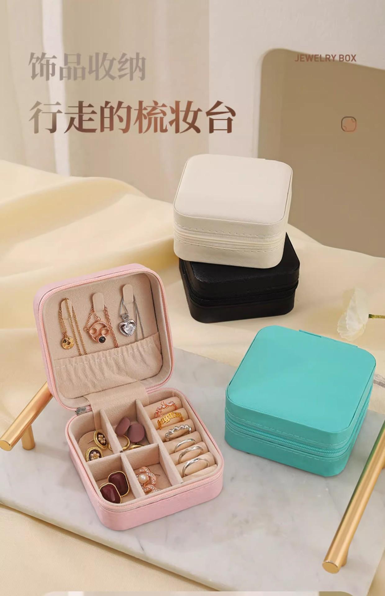 Caja de almacenamiento de joyas al por mayor en stock, caja de almacenamiento de joyas portátil, caja de almacenamiento para collares, pendientes y anillos, caja transfronteriza
