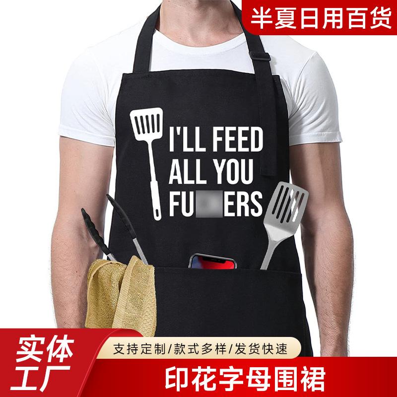 Delantal de Amazon para Hombres y Mujeres Parejas Cocina Barbacoa Exportación Transfronteriza Logotipo Letra Impresa Delantal Ropa de Trabajo para Restaurante