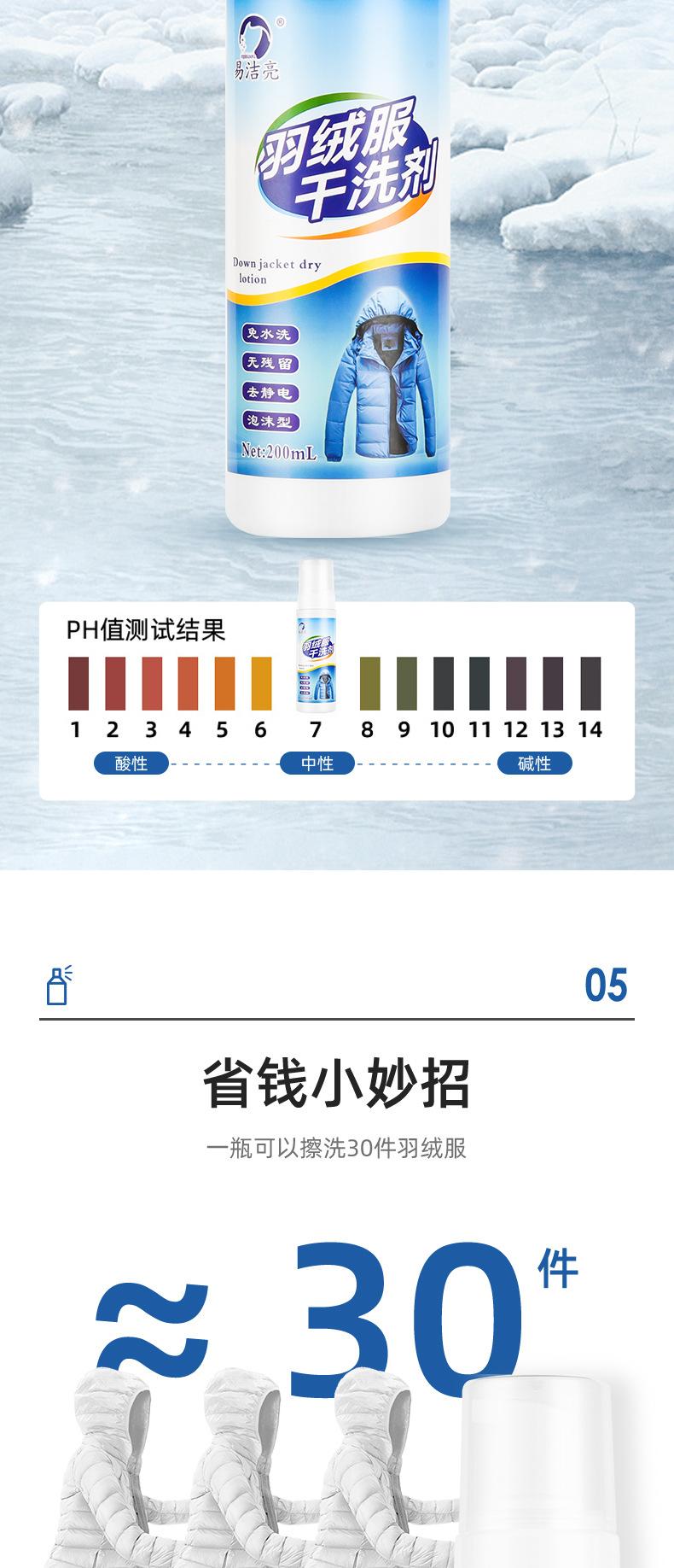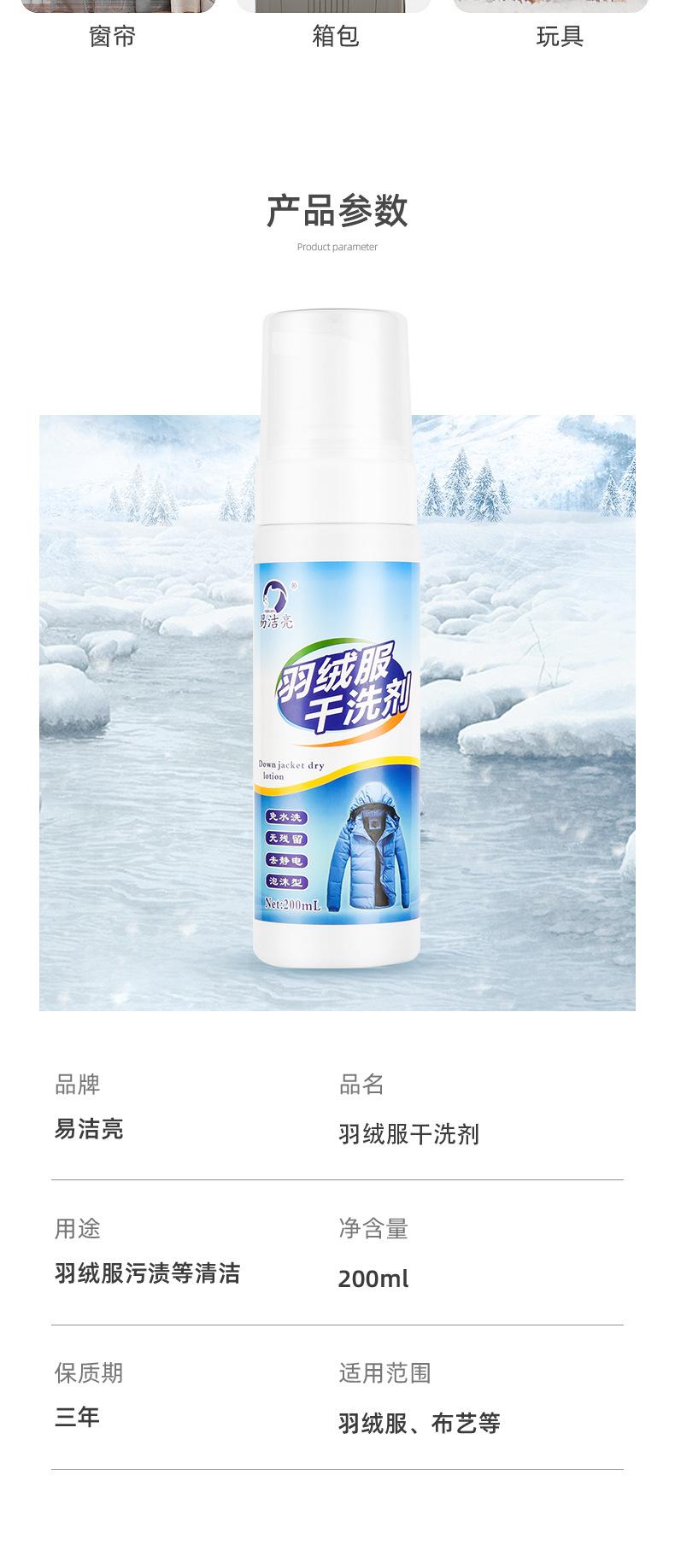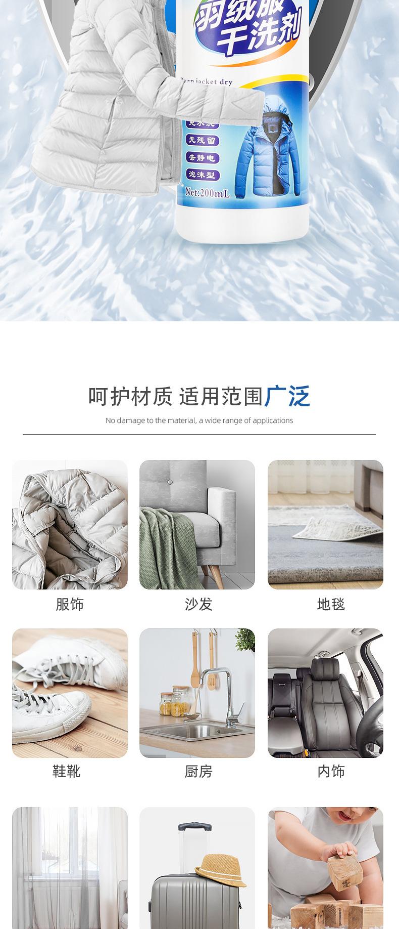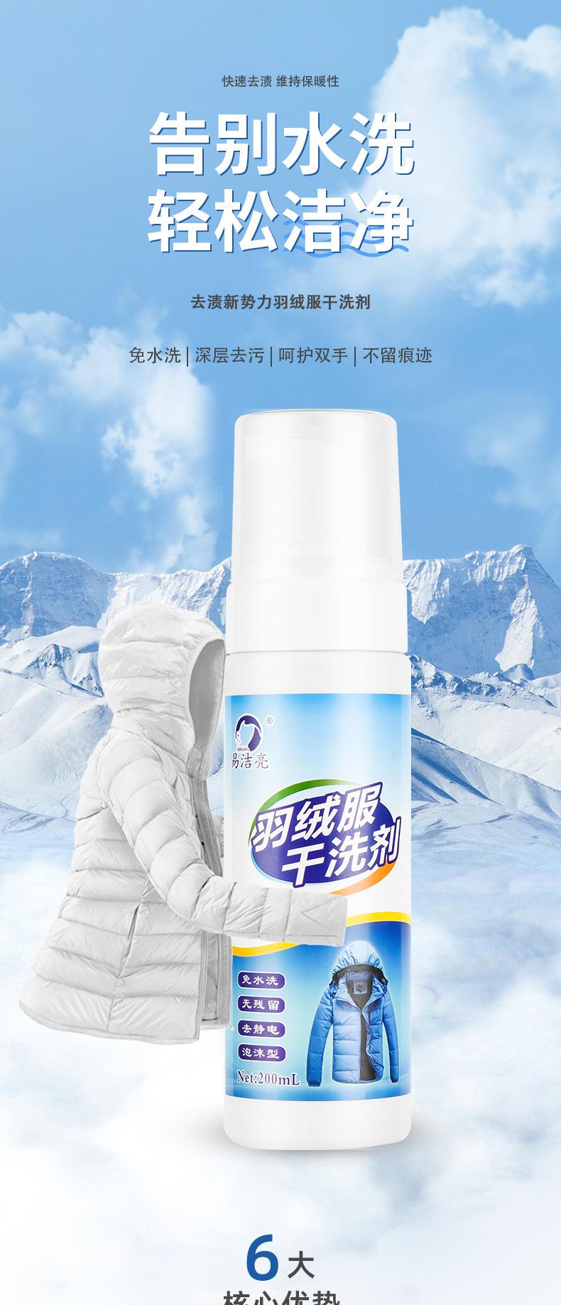 Agente de limpieza en seco para chaquetas de plumas de 200 ml por caja: 90 botellas