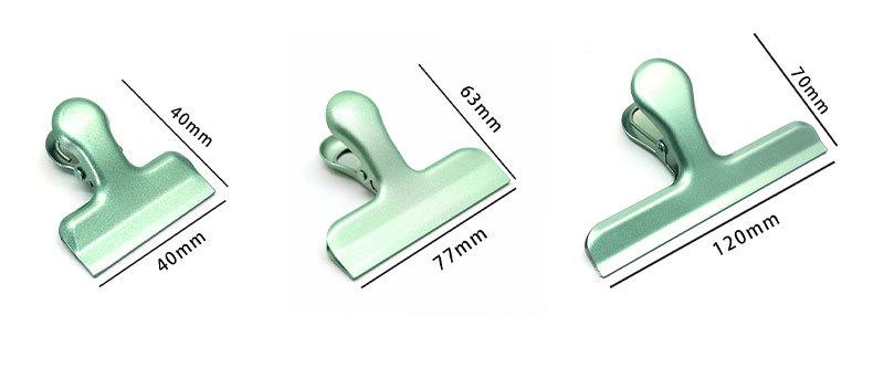 Clip de metal, clip multifunción, clip para bocadillos, clip de cola larga, venta al por mayor, clip verde esmerilado sellado, clip de acero inoxidable para papelería y boletos