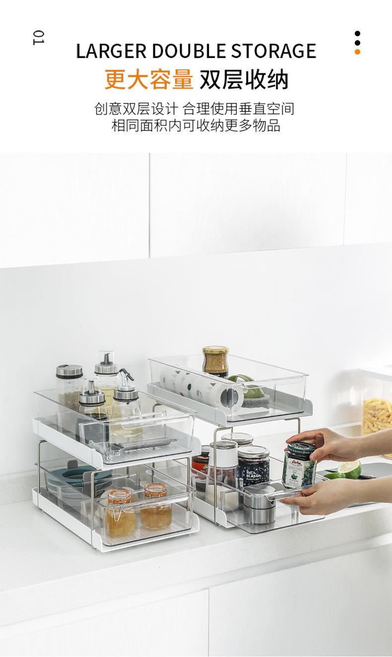 Estante de almacenamiento transparente de doble capa para cocina de Amazon, gabinete, especiero, cajón de doble capa, estante de almacenamiento para cocina