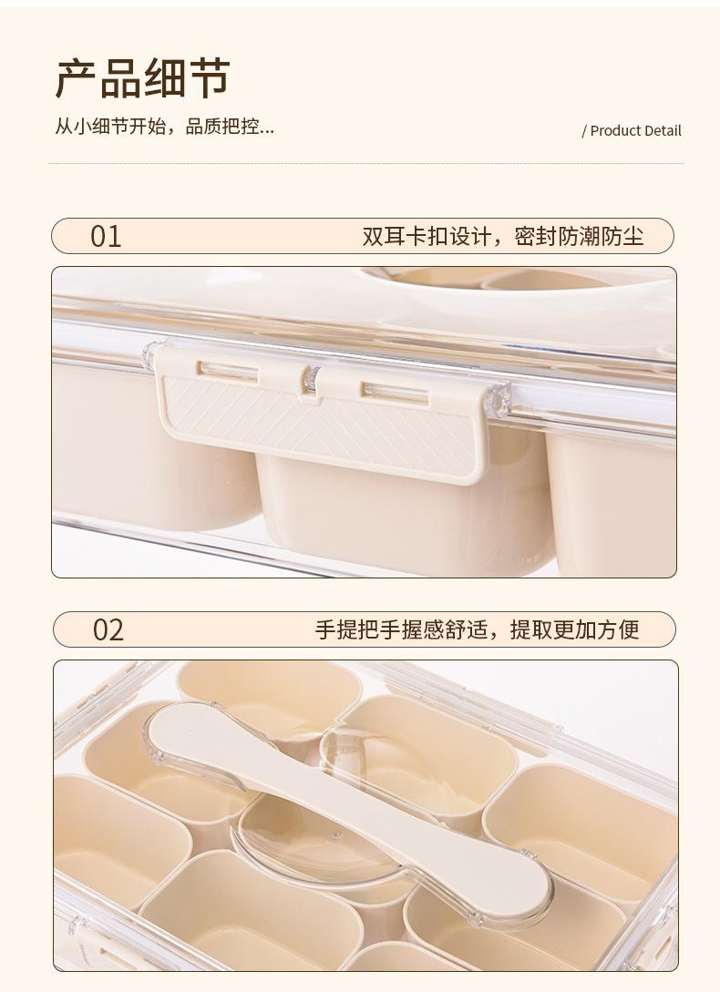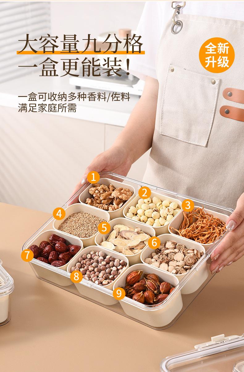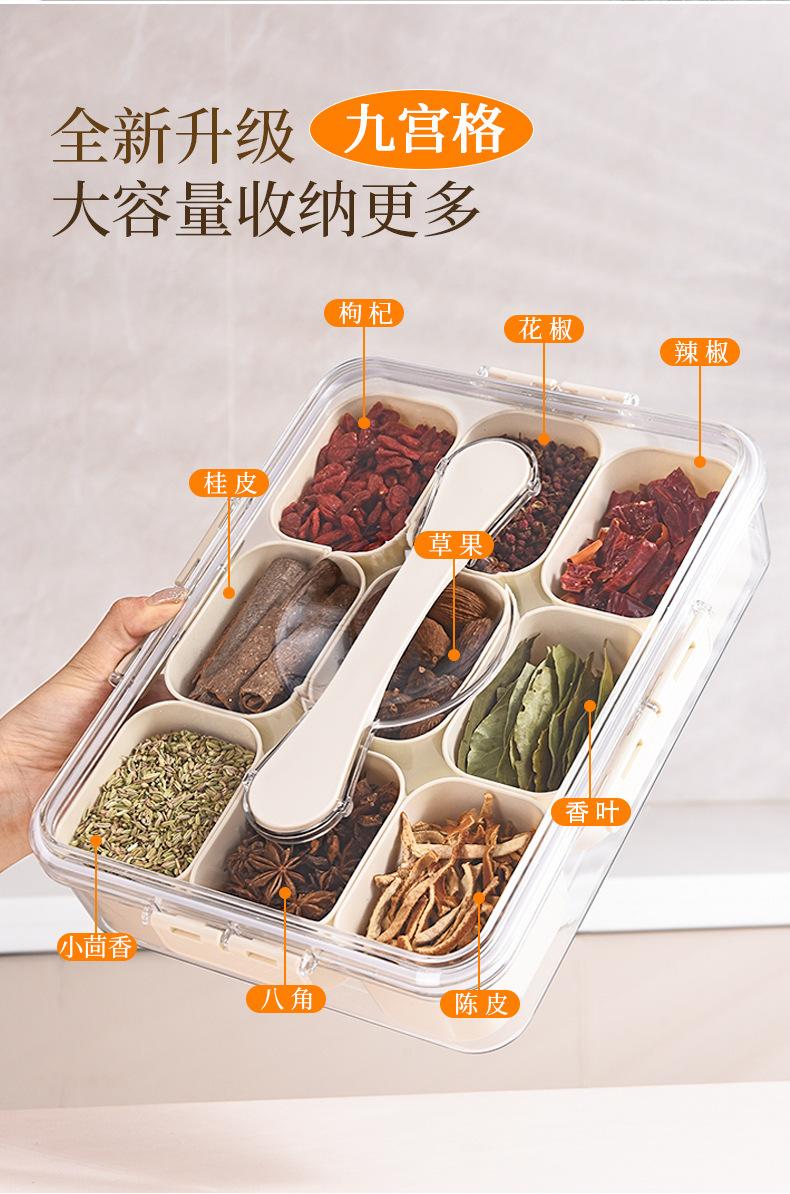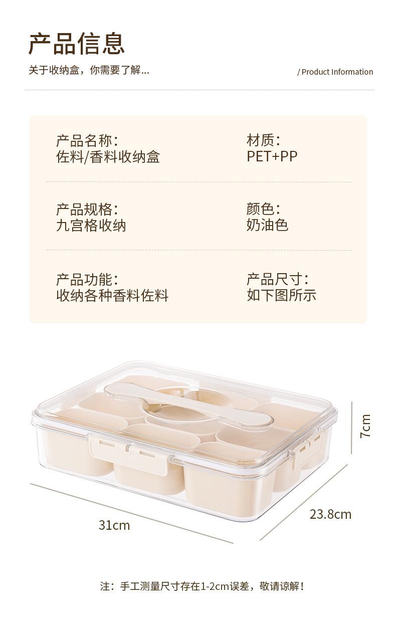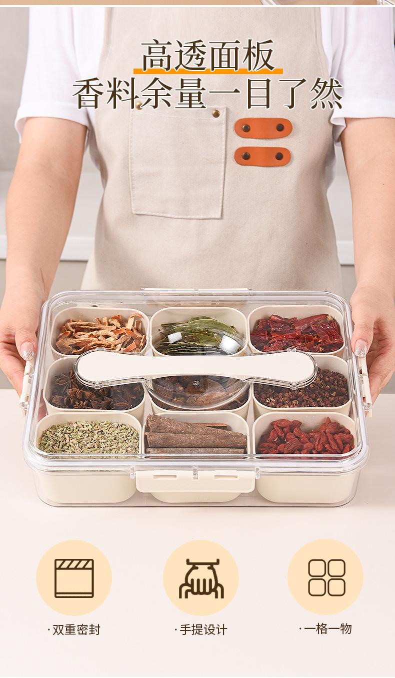 Caja de Almacenamiento de Especias de Nueve Compartimentos Asa Almacenamiento Crisper Nuevo Hogar Grado Alimenticio Caja de Compartimentos para Especias Caja de Almacenamiento
