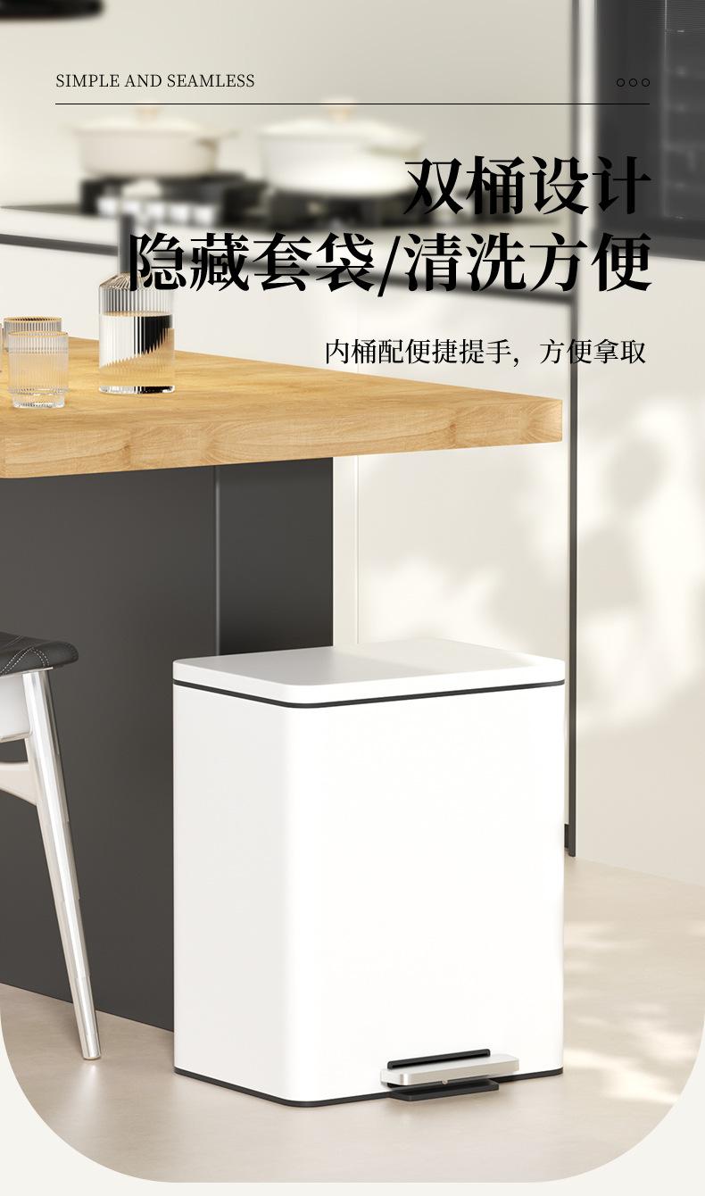 Bote de basura de gran capacidad para cocina doméstica, de acero inoxidable, tipo pedal con tapa, estilo ins de gran apariencia, para sala de estar grande