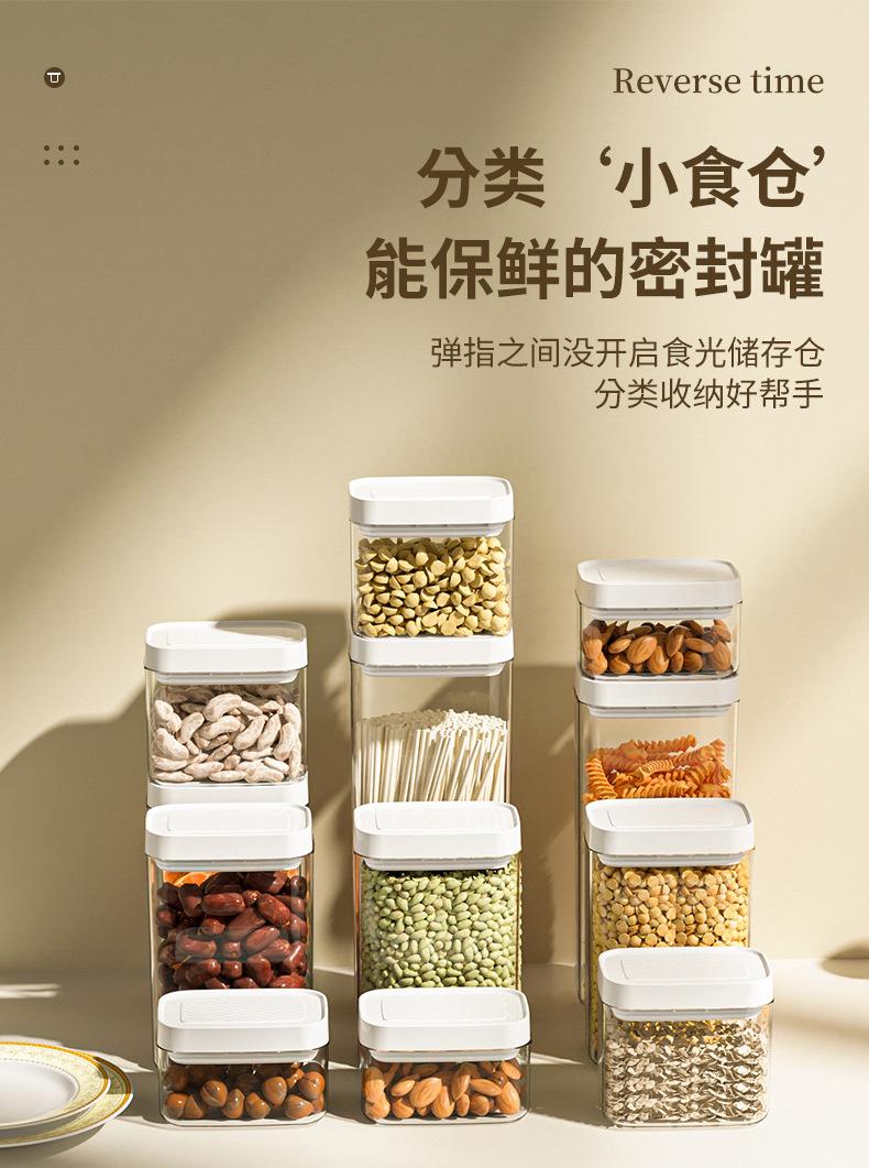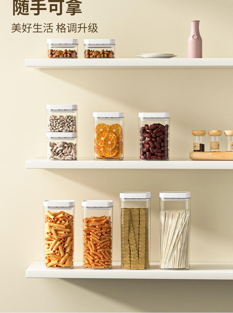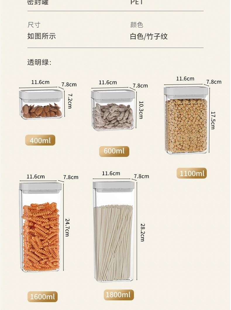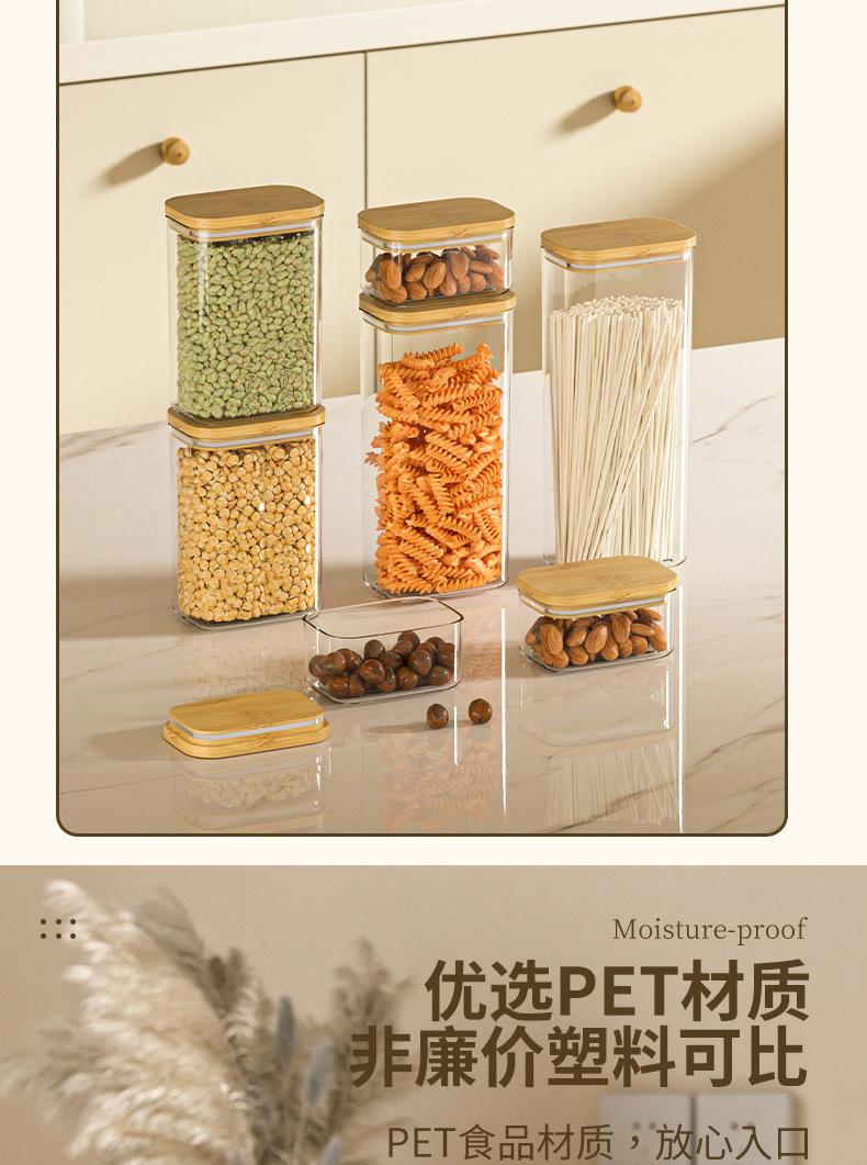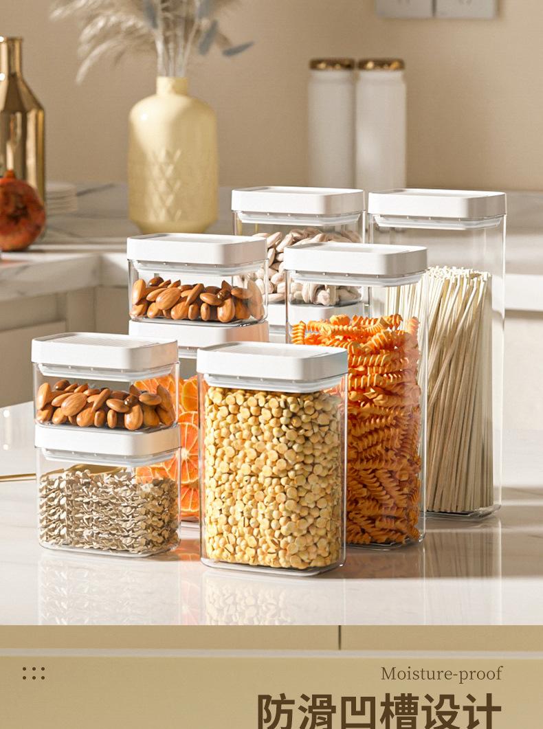 Tarro sellado de plástico transparente de grado alimenticio para almacenamiento de granos de cocina, aperitivos, productos secos, té