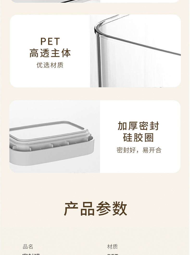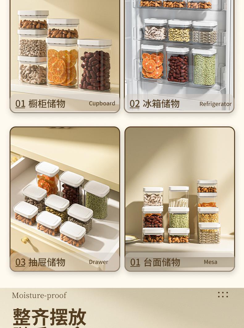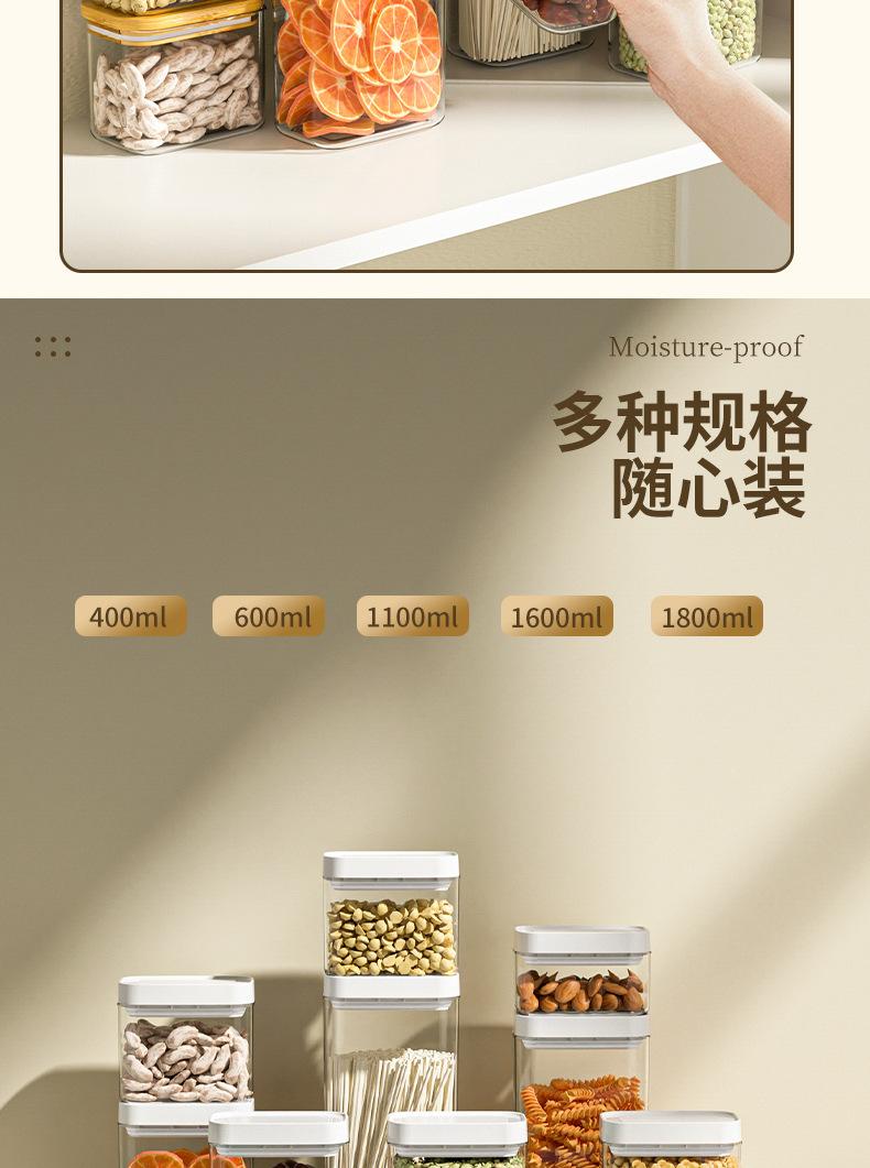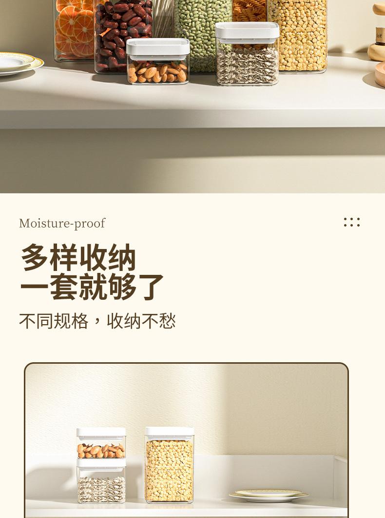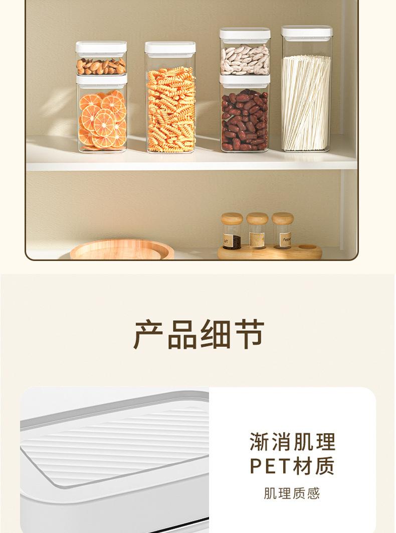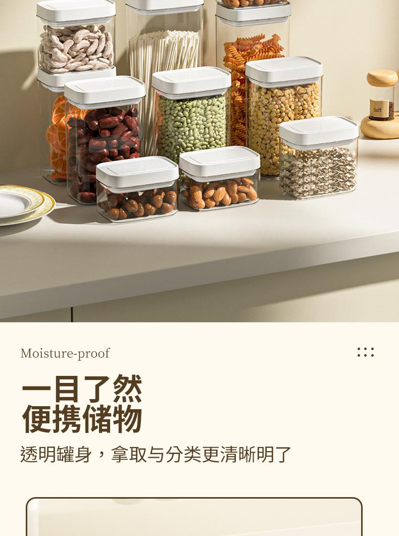 Tarro sellado de plástico transparente de grado alimenticio para almacenamiento de granos de cocina, aperitivos, productos secos, té