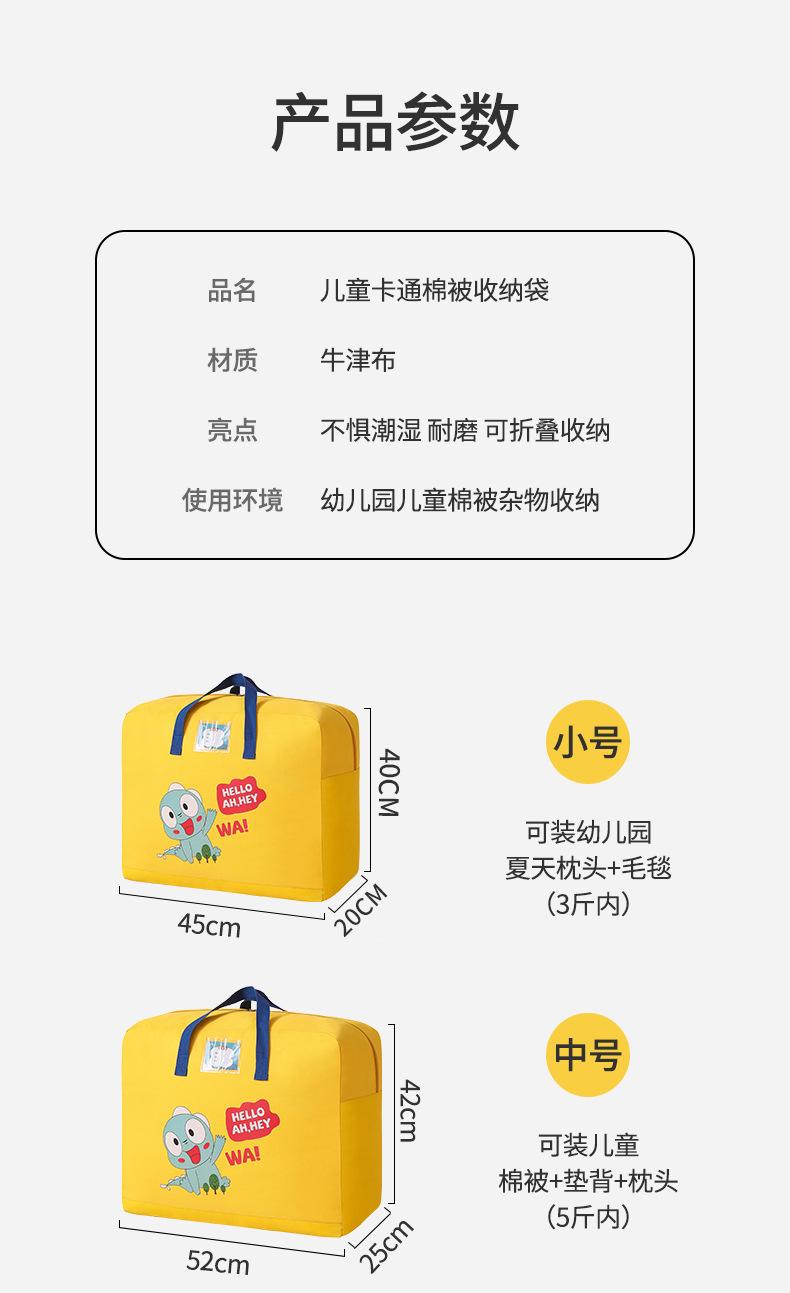 Bolsa de almacenamiento para ropa de cama de jardín de infantes, bolsa de edredón con dibujos animados para niños, bolsa de almacenamiento para embalaje de equipaje con acabado de ropa, venta al por mayor