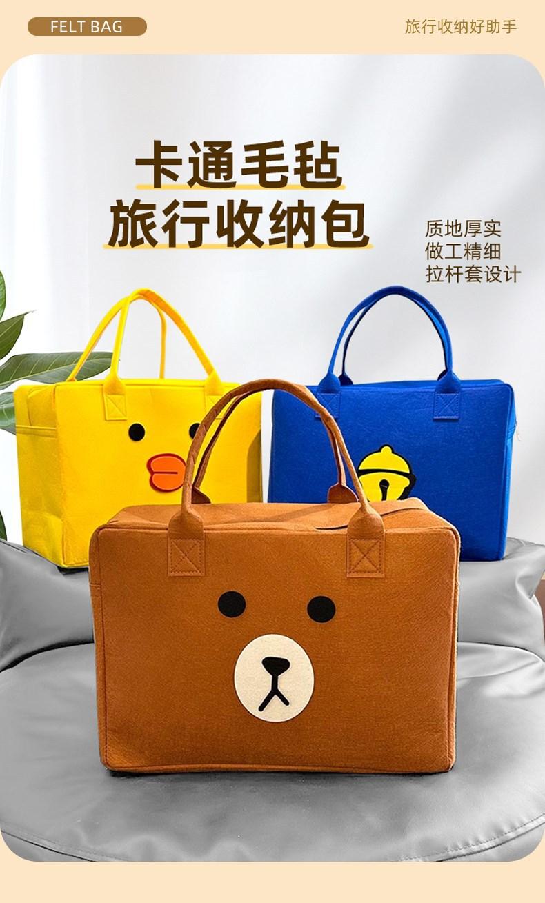 Bolsa de viaje de fieltro, bolsa de almacenamiento, bolsa de equipaje portátil, bolsa de almacenamiento de dibujos animados, bolsa organizadora de ropa, bolsa para viajes de negocios
