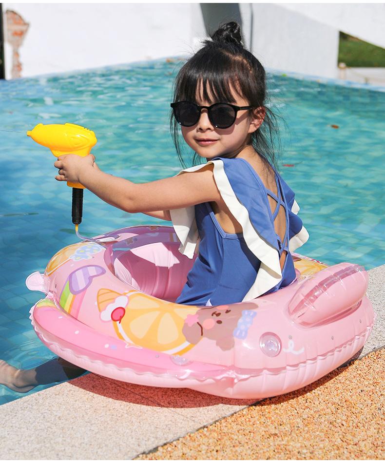 Asiento de pistola de agua con dibujos animados para niños, asiento de barco, pantalones, anillo de natación antivuelco, venta al por mayor