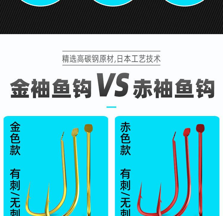 | |  | | Anzuelos planos reforzados de oro, anzuelos rojos, con o sin púas, de acero con alto contenido de carbono para pesca salvaje, finos y a granel para carpas crucianas. | | ¥0.05116.500 unidades vendidas |