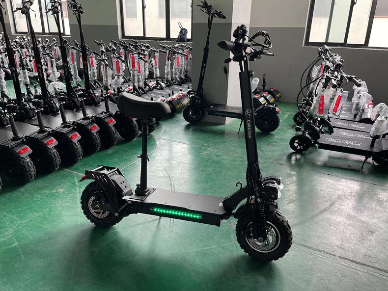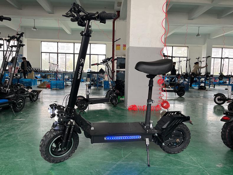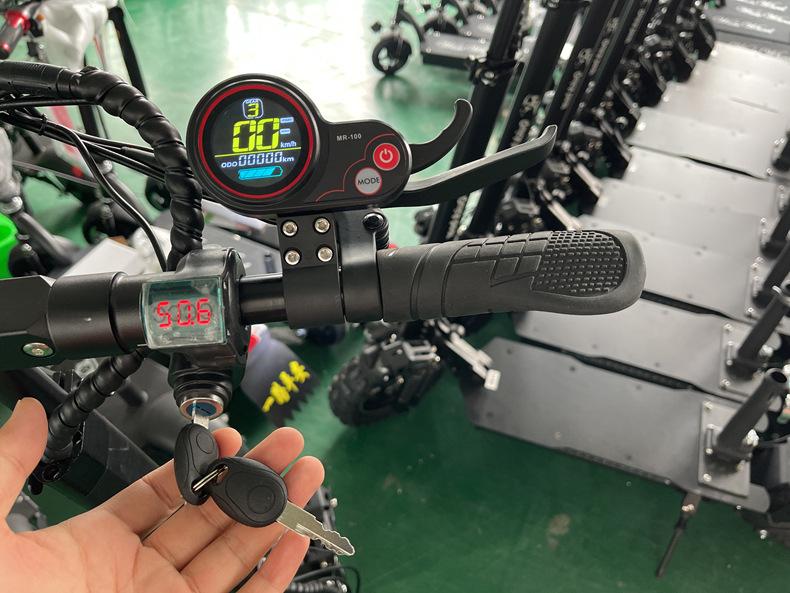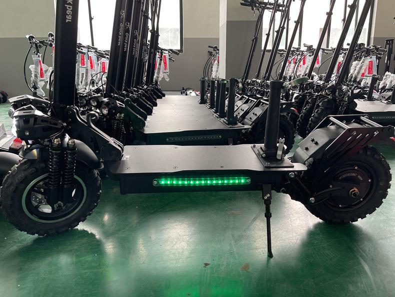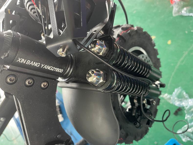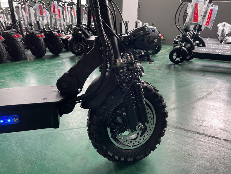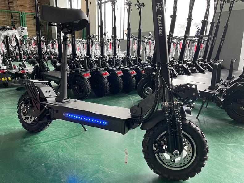 Focos dobles intermitentes, tres modos de iluminación, neumáticos todoterreno de 11 pulgadas, con asiento trasero, ruedas de aleación de aluminio, sistema de frenos de disco delantero y trasero, cuadro plegable integrado, se puede colocar en el maletero, capacidad de carga de 200 kg, 4 amortiguadores de resorte delanteros, amortiguadores hidráulicos dobles traseros, velocidad máxima de 55, focos dobles delanteros, faros delanteros centrales, luces de circulación en los laterales de los pedales, medidor LCD de velocidad y potencia, ¡luces traseras y luces de freno!