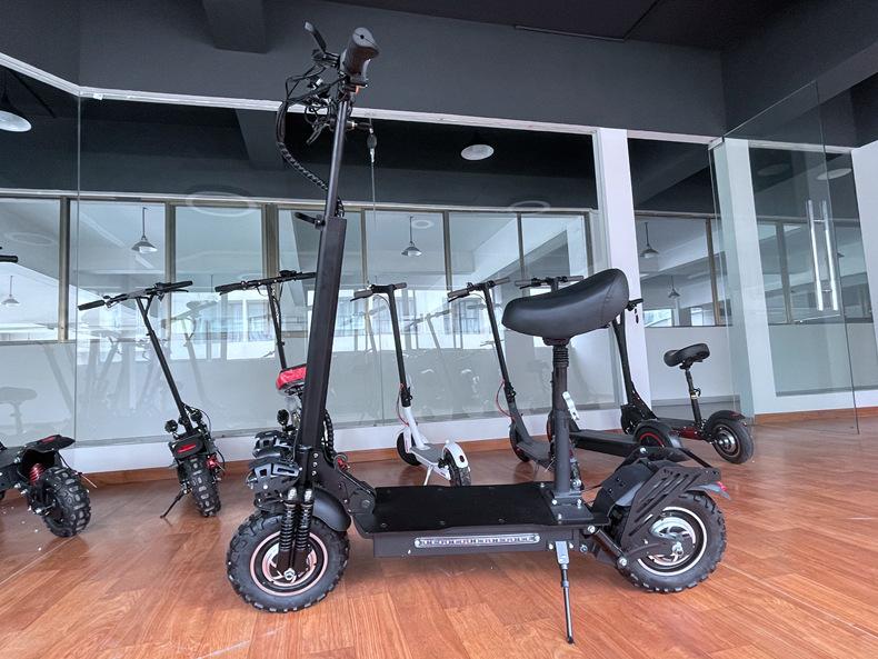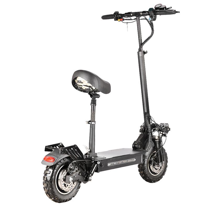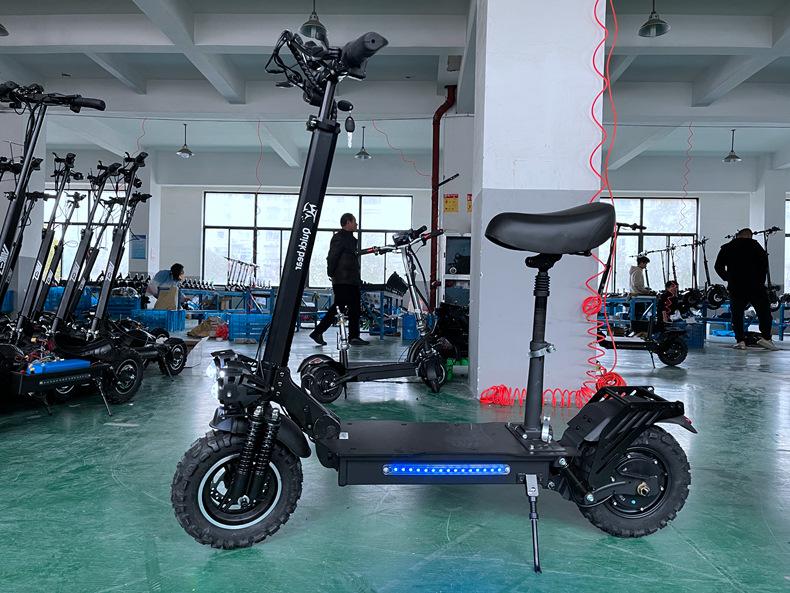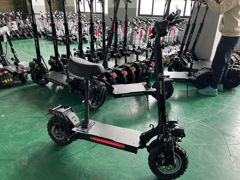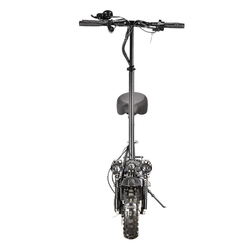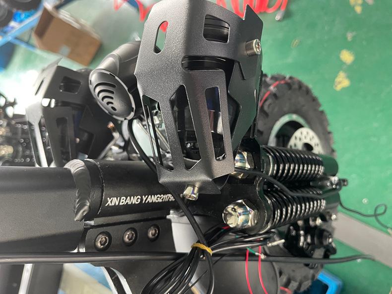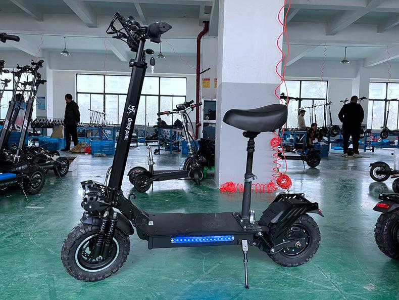 Focos dobles intermitentes, tres modos de iluminación, neumáticos todoterreno de 11 pulgadas, con asiento trasero, ruedas de aleación de aluminio, sistema de frenos de disco delantero y trasero, cuadro plegable integrado, se puede colocar en el maletero, capacidad de carga de 200 kg, 4 amortiguadores de resorte delanteros, amortiguadores hidráulicos dobles traseros, velocidad máxima de 55, focos dobles delanteros, faros delanteros centrales, luces de circulación en los laterales de los pedales, medidor LCD de velocidad y potencia, ¡luces traseras y luces de freno!