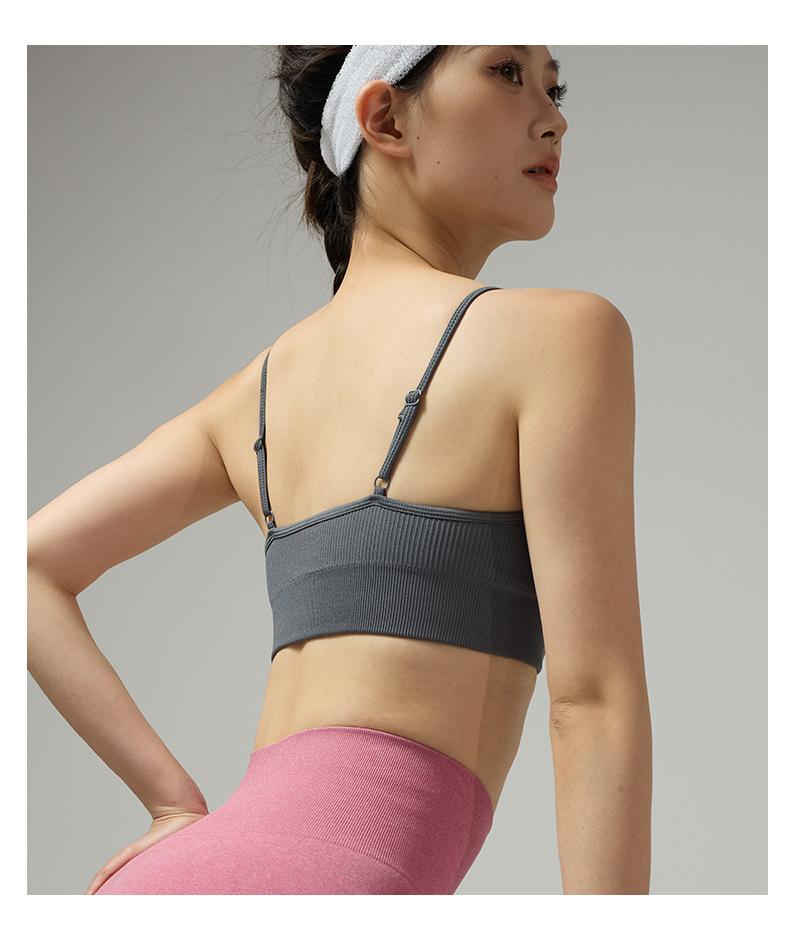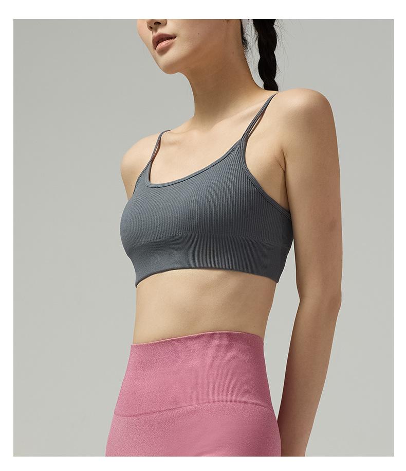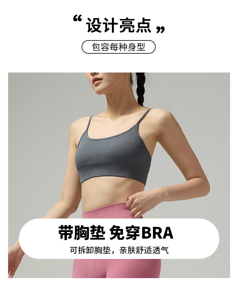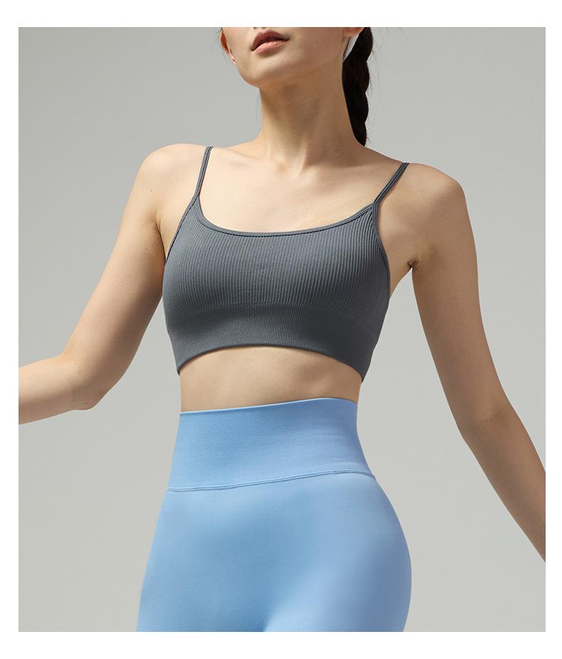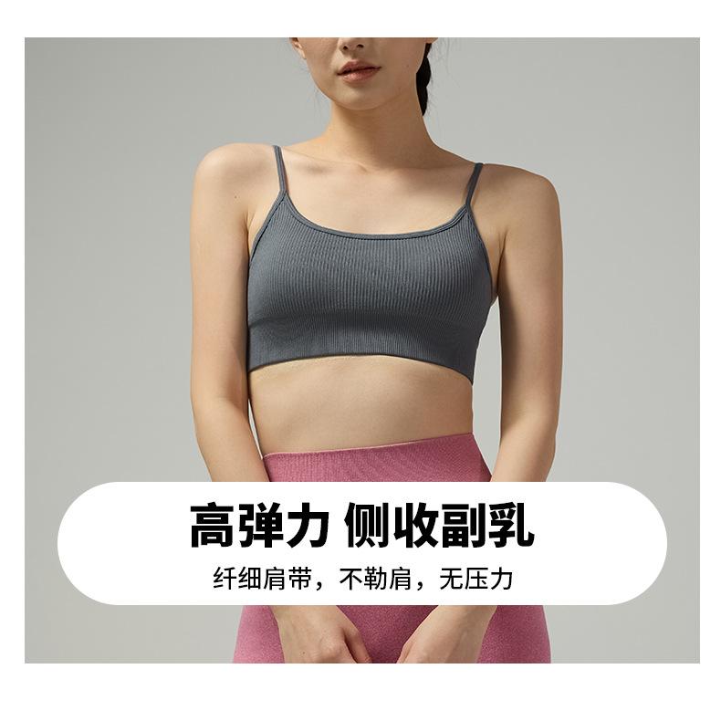 Ropa de yoga desnuda, top de tirantes finos para mujer, sujetador deportivo de primavera y verano, ropa interior de fitness a prueba de golpes con almohadilla para el pecho.