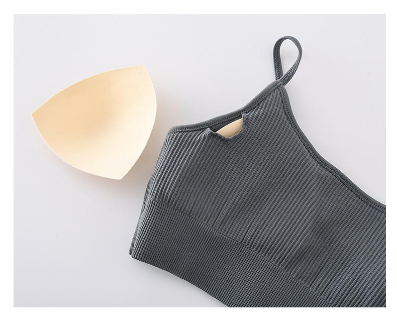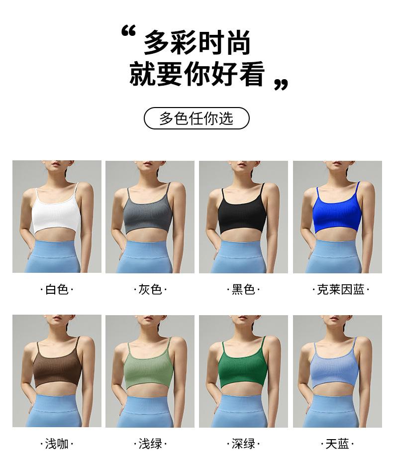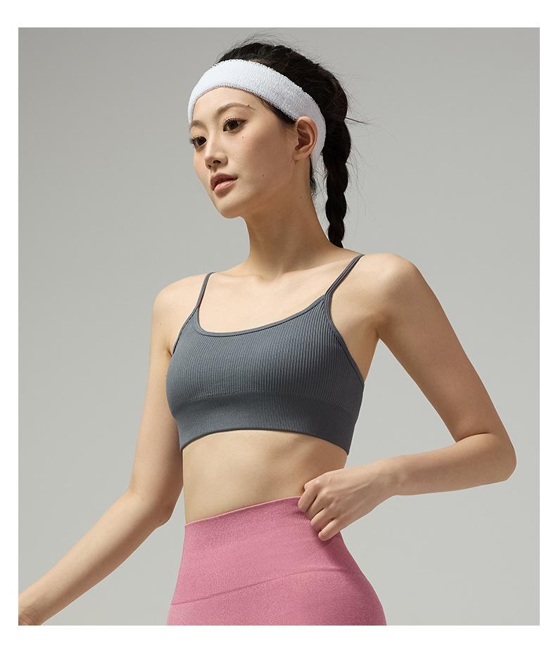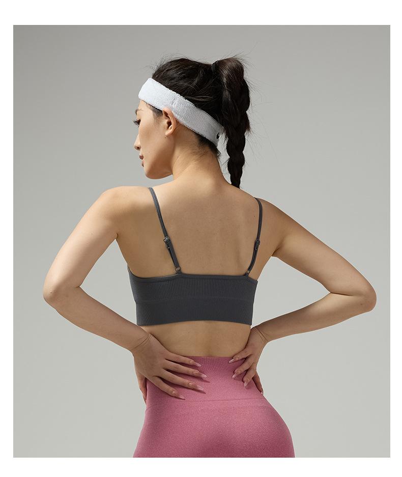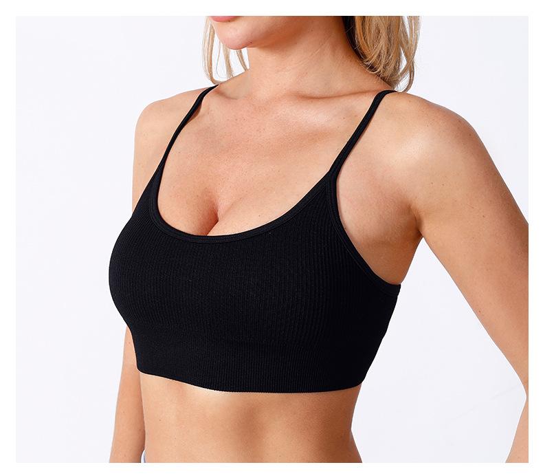 Ropa de yoga desnuda, top de tirantes finos para mujer, sujetador deportivo de primavera y verano, ropa interior de fitness a prueba de golpes con almohadilla para el pecho.