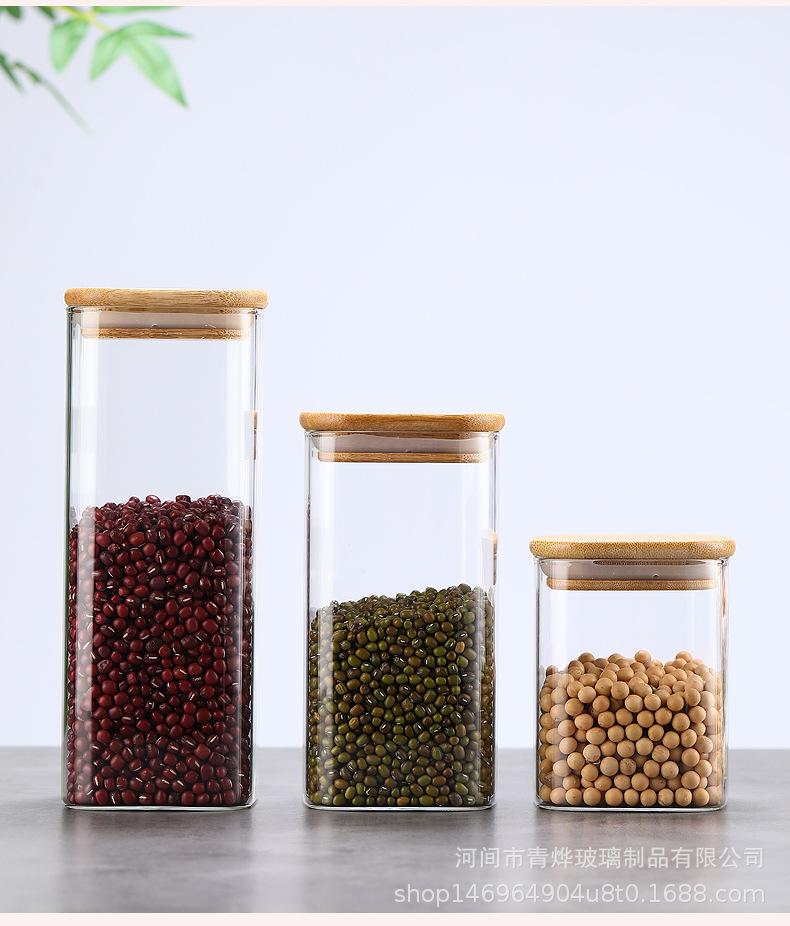 Tarro sellado cuadrado para almacenar frutos secos multigrano, de vidrio transparente, de grado alimenticio, de gran capacidad