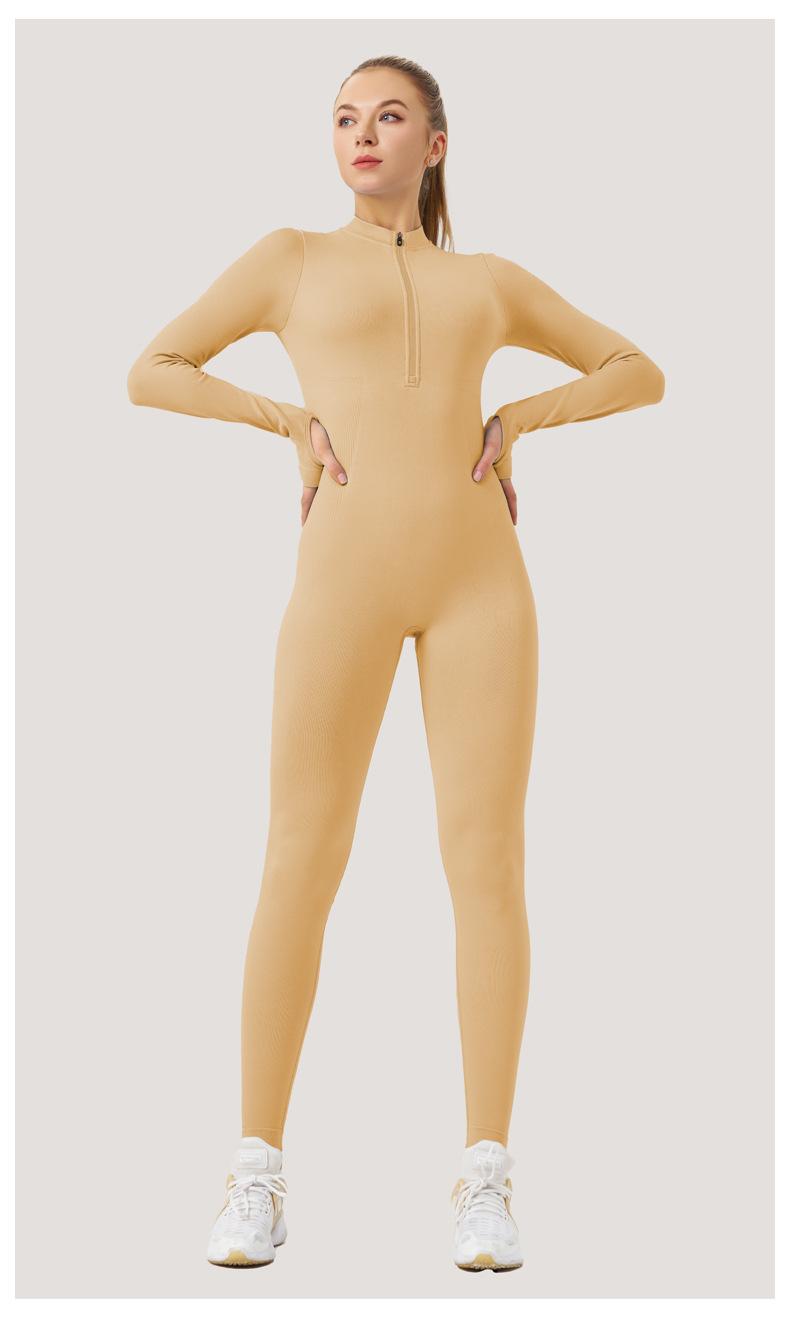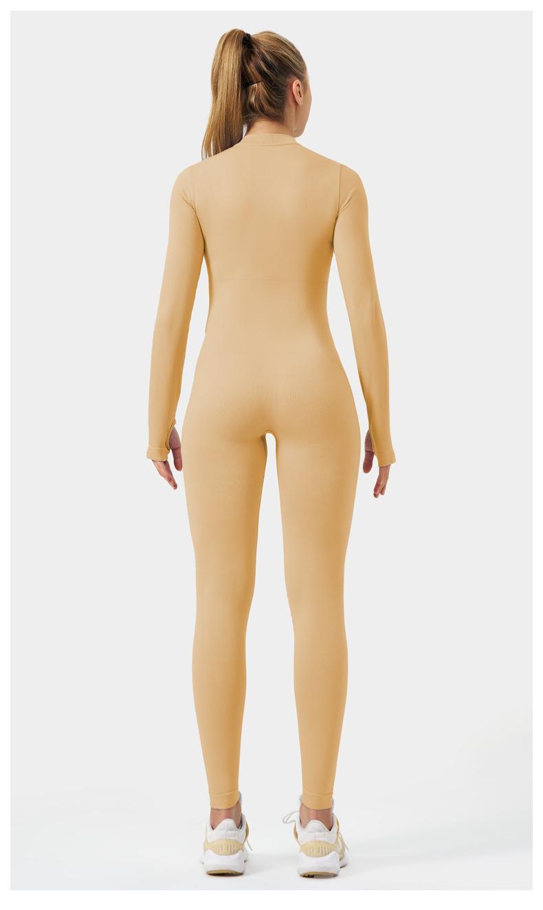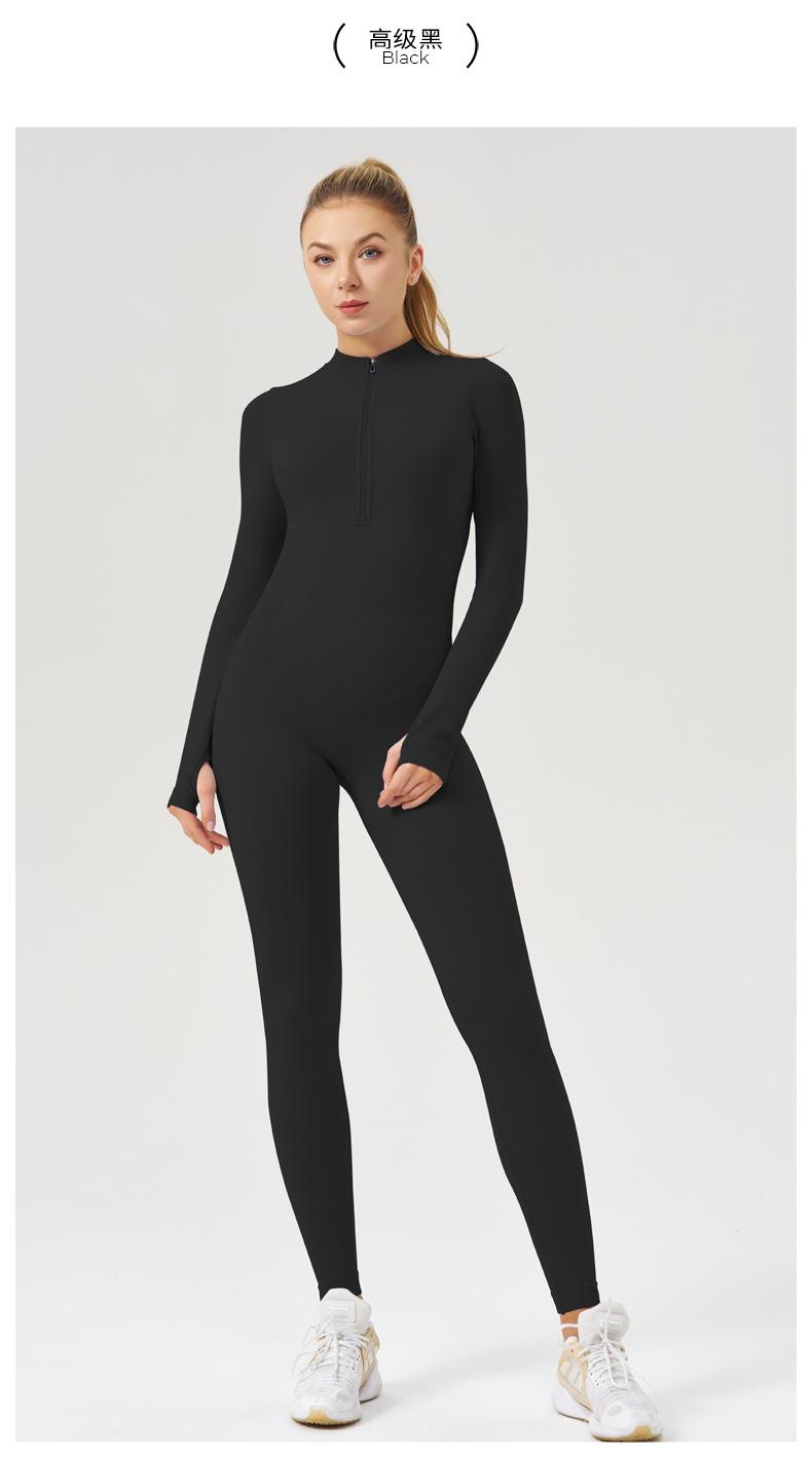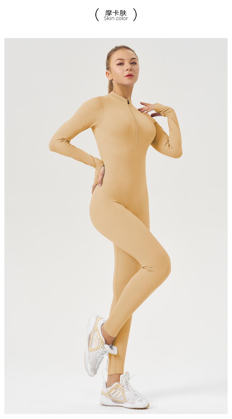 Ropa de Yoga de Fitness Estilo Europeo y Americano Sensación Desnuda para Mujer, Mono de Yoga de Manga Larga con Cierre, Ropa Deportiva Moldeadora del Cuerpo, Adelgazante, Transfronterizo