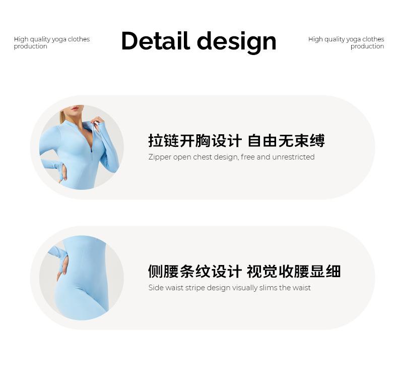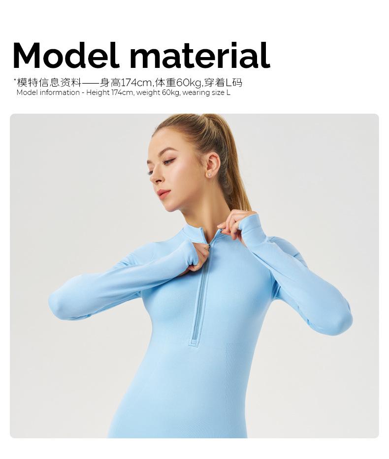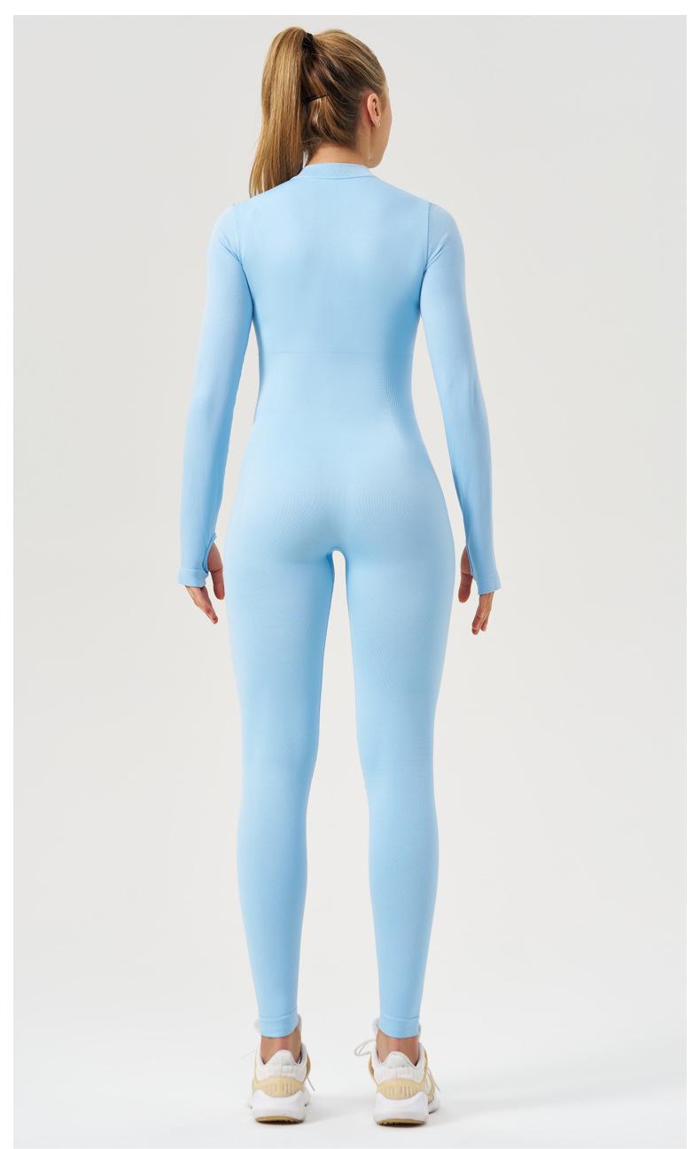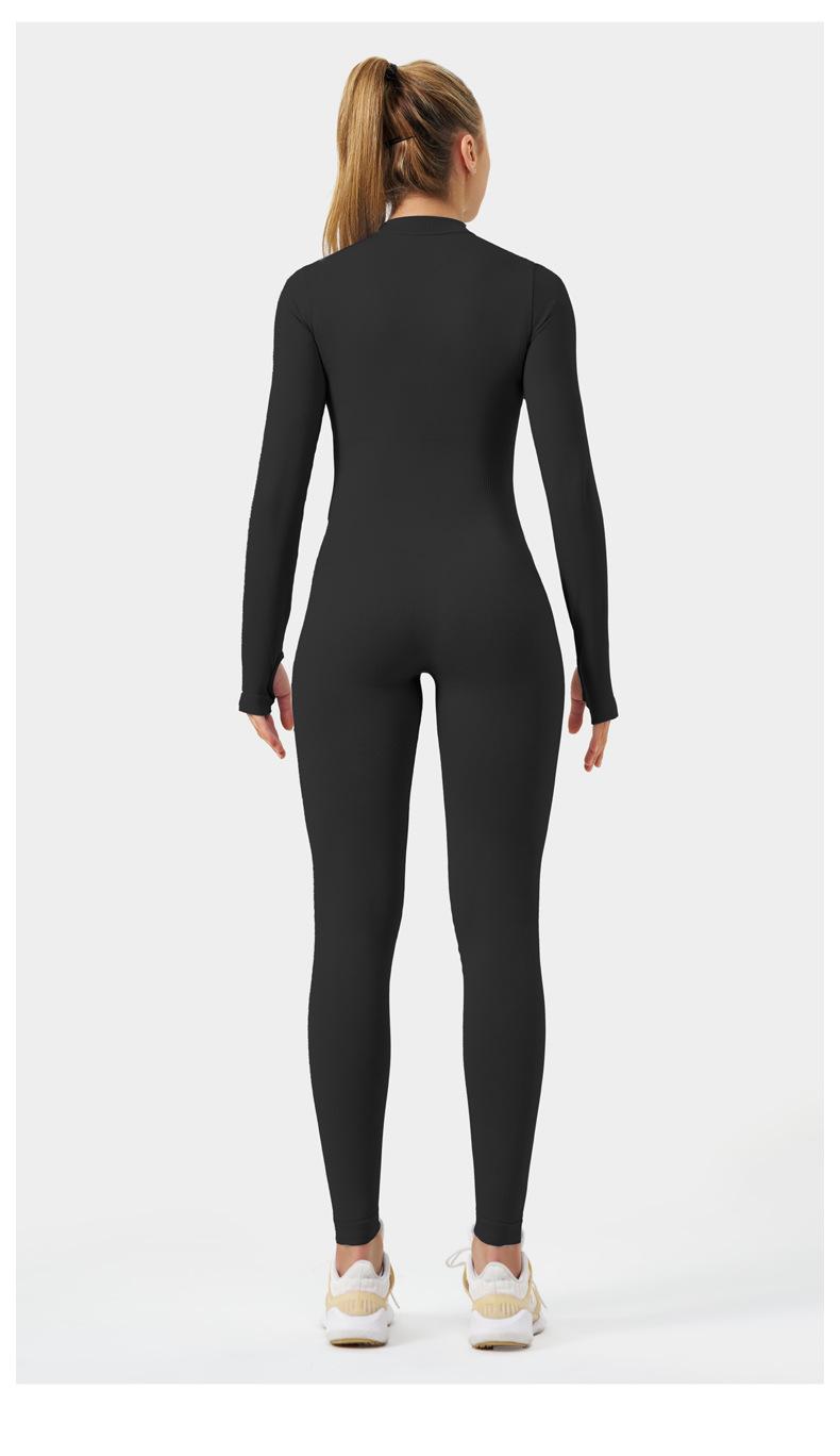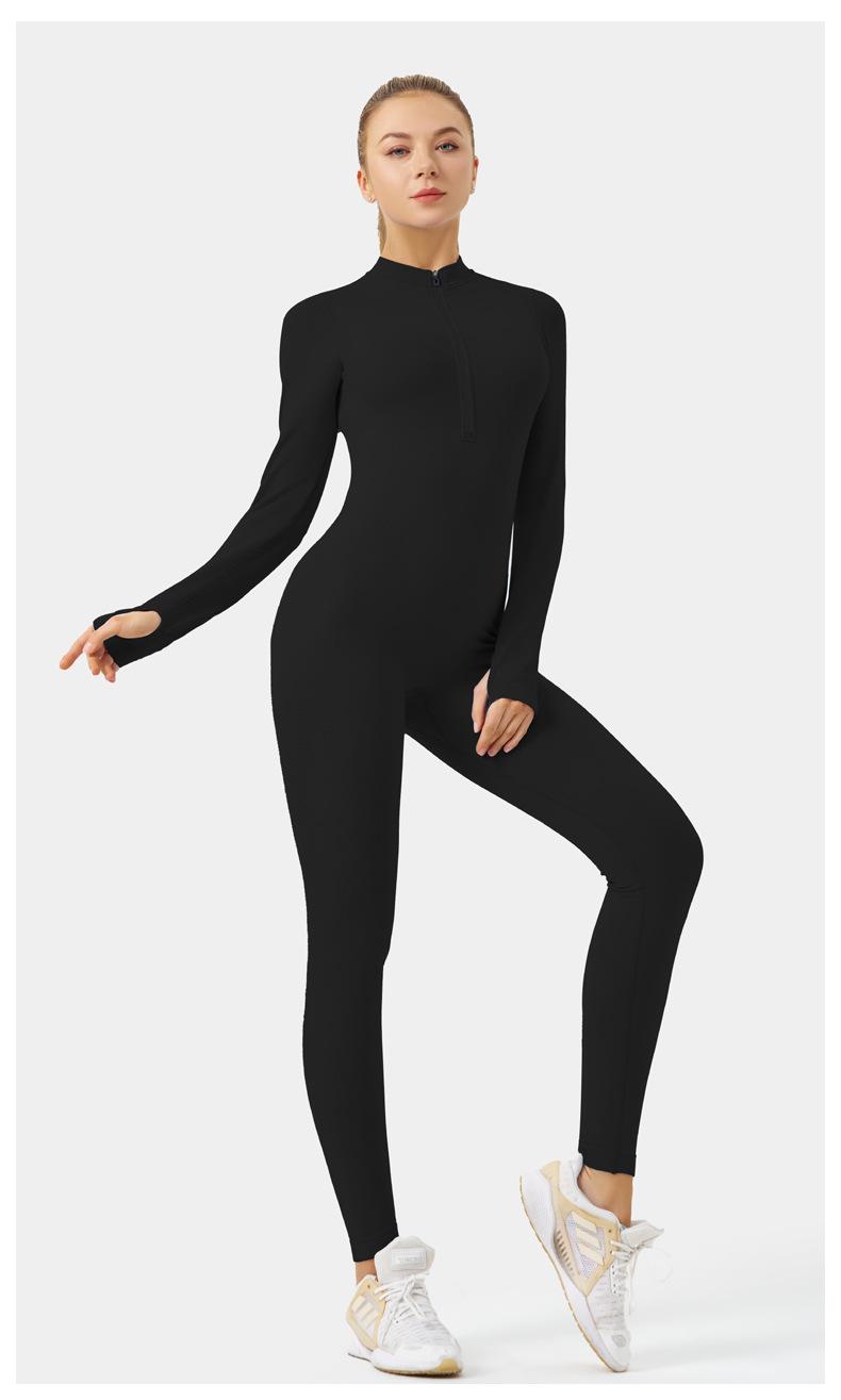Ropa de Yoga de Fitness Estilo Europeo y Americano Sensación Desnuda para Mujer, Mono de Yoga de Manga Larga con Cierre, Ropa Deportiva Moldeadora del Cuerpo, Adelgazante, Transfronterizo