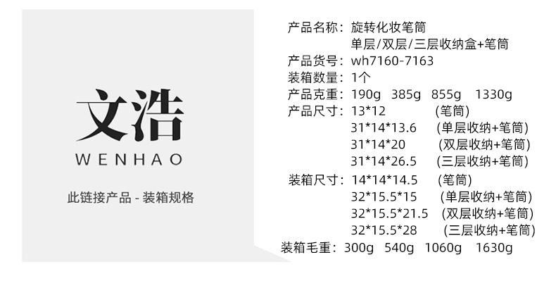 Rotating makeup pen bucket [cream white], Single layer storage box + pen holder [cream white], Double-layer st...