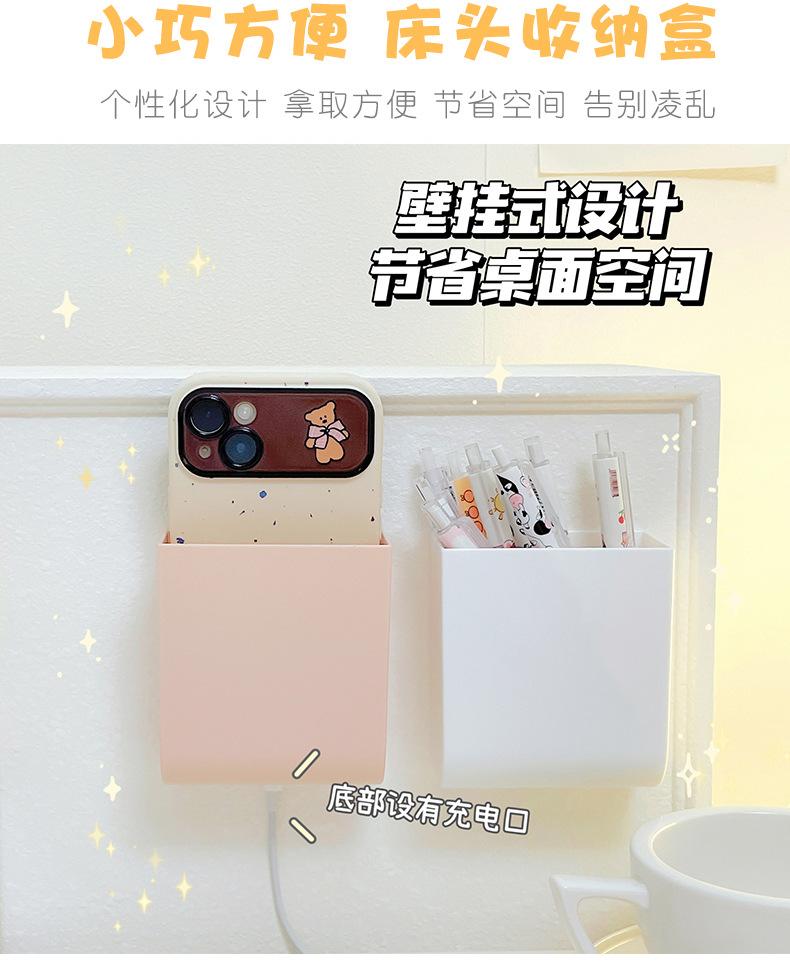 Caja de almacenamiento adhesiva para pared, multifunción, para cargar teléfonos móviles, sin perforaciones, para montar en la pared