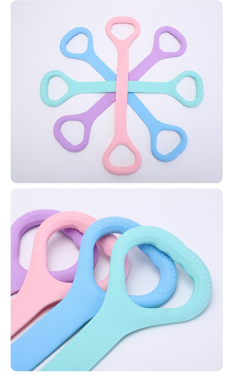 Pink silicone figure eight tensioner, Purple silicone figure eight tensioner, Blue silicone figure eight tensioner