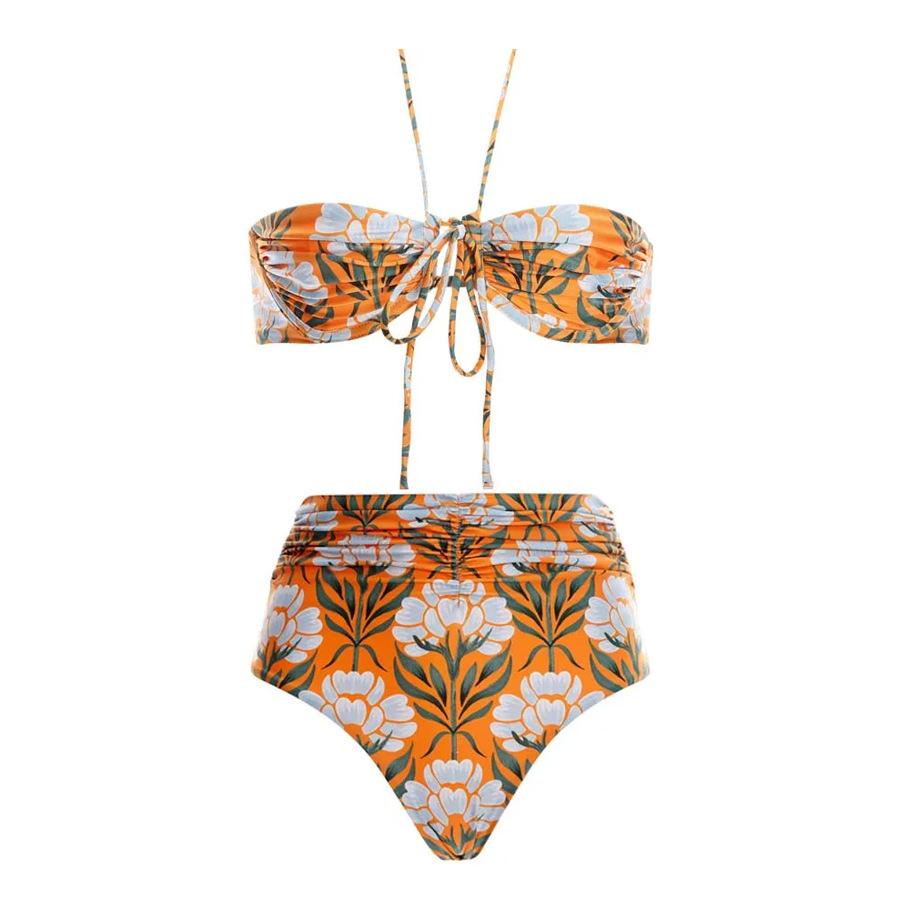 Compra Traje de baño de cintura alta con estampado europeo y americano para mujer, bikini con tirantes tipo halter y falda de gasa, Amazon 2024 al por mayor en Joom.pro