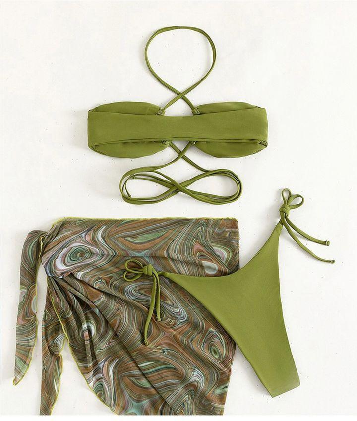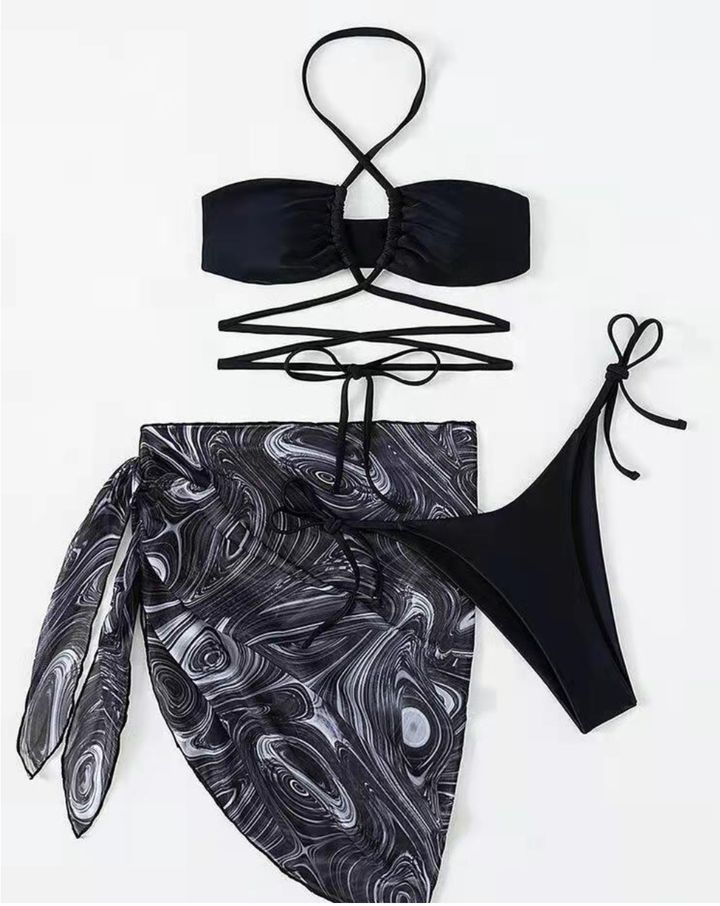Traje de baño de tres piezas para mujer, bikini de playa coreano con tirantes sin espalda sexy de estilo europeo y americano al por mayor de fábrica
