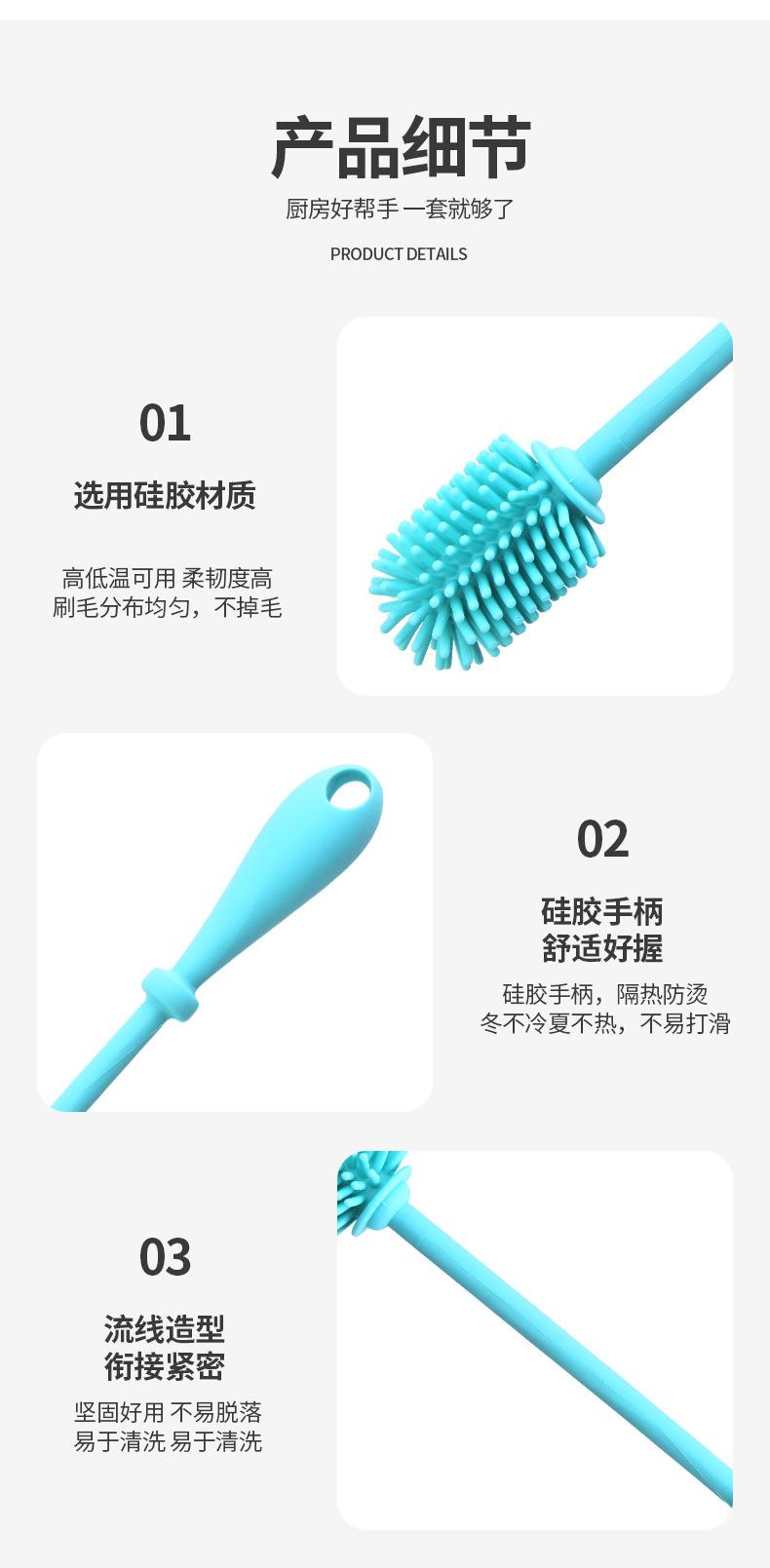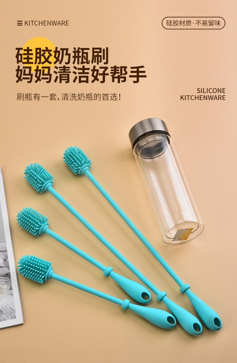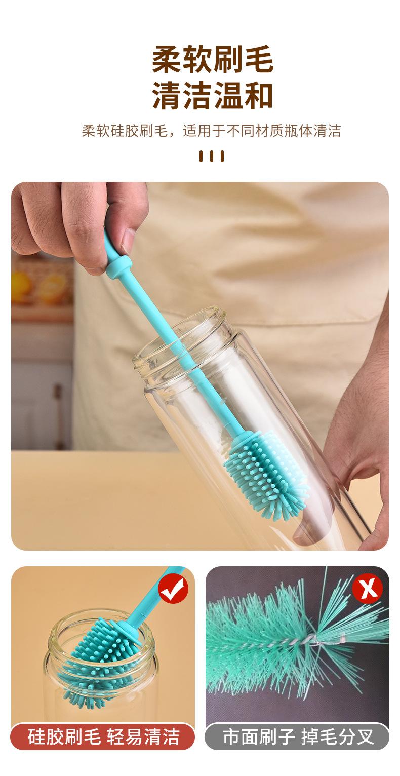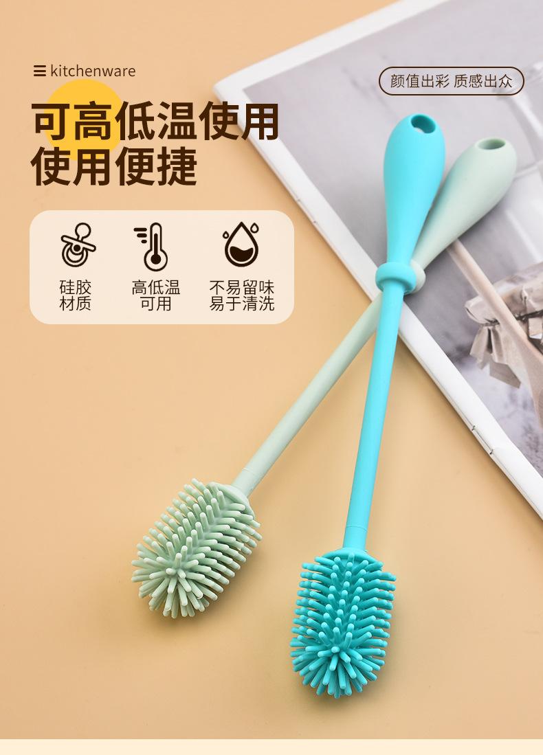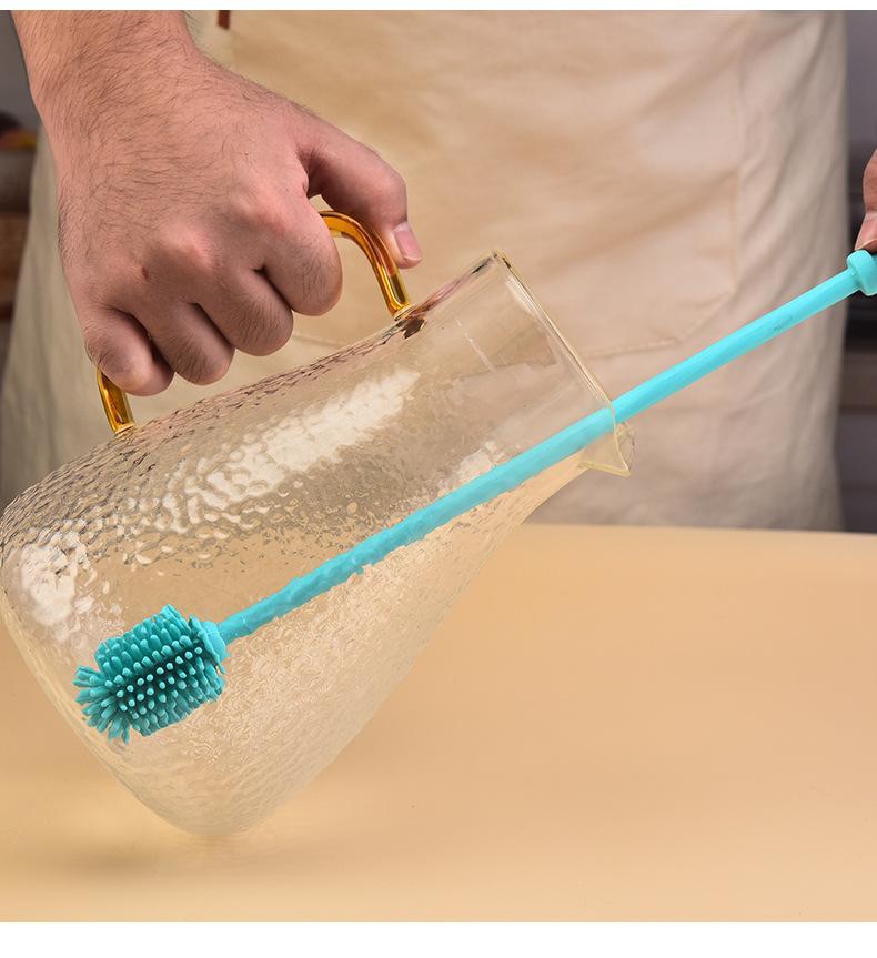 Cepillo de Silicona para Biberón Mango Largo Limpieza Cepillo para Taza de Agua Hogar Mancha de Té Limpieza Rotatoria Cepillo de Silicona Venta al por Mayor