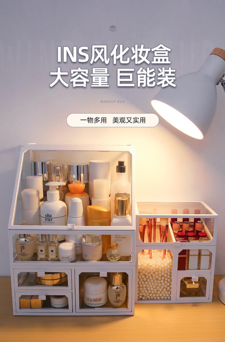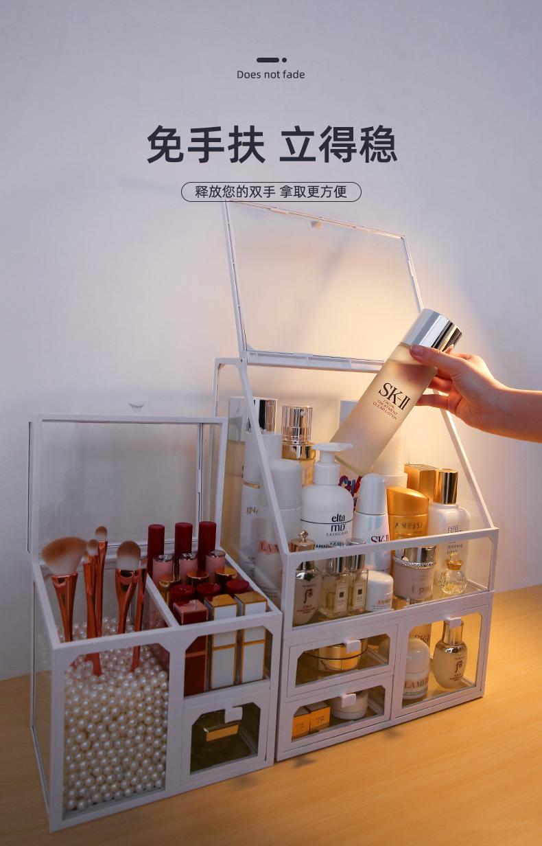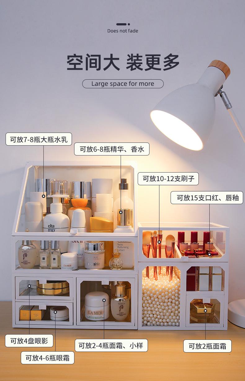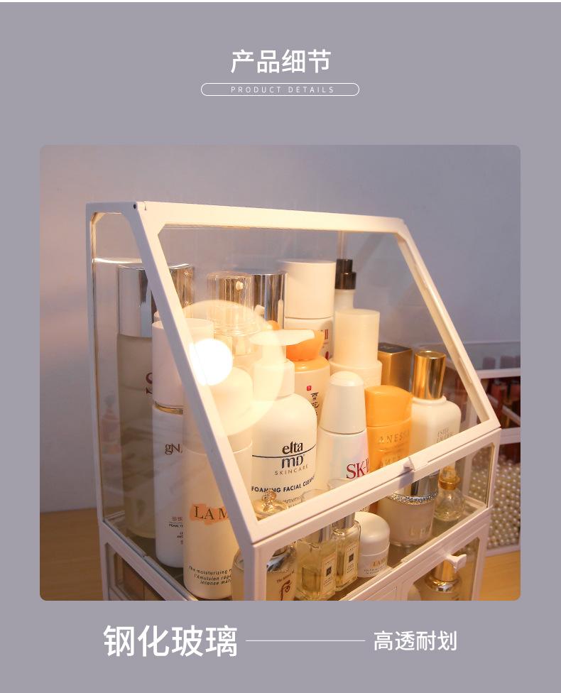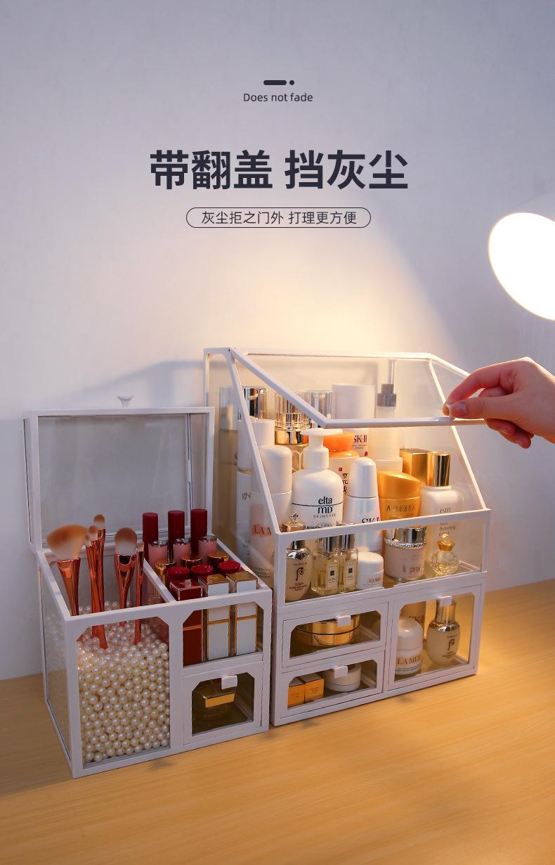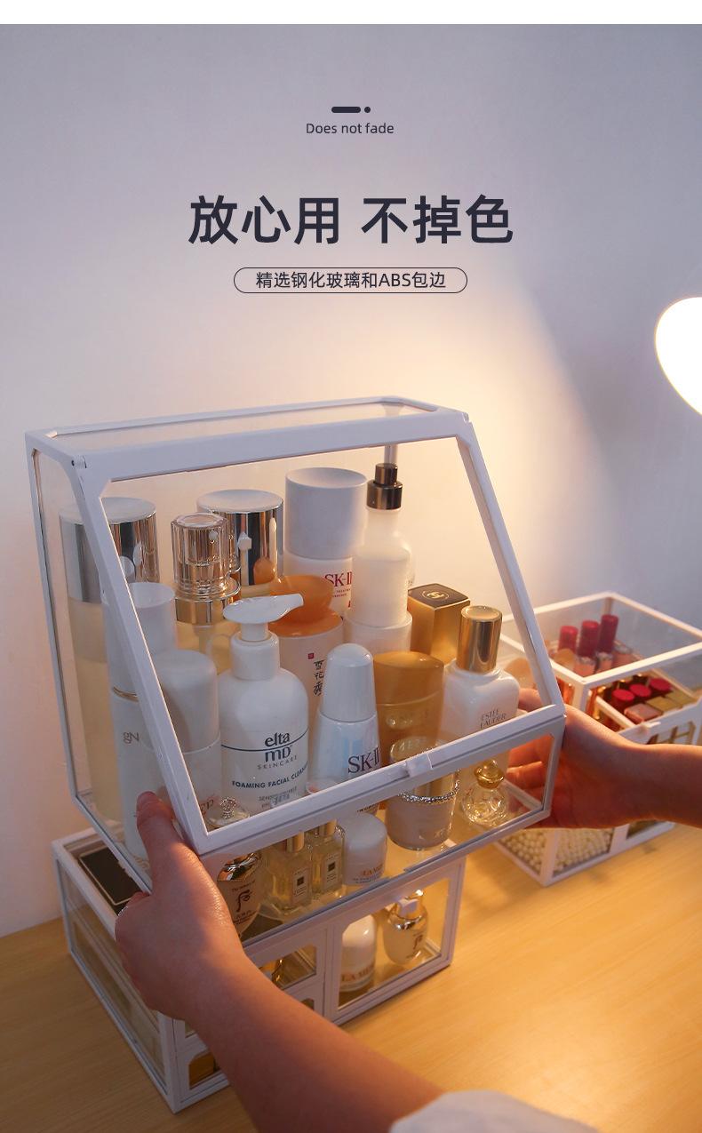 Tocador de Escritorio Cubo de Almacenamiento para Productos para el Cuidado de la Piel y Brochas de Maquillaje de Gran Capacidad a Prueba de Polvo Caja de Almacenamiento de Cosméticos de Vidrio con Tapa