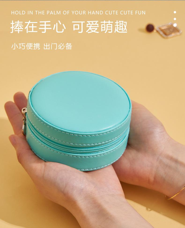 Caja de almacenamiento de joyas con cremallera redonda creativa de cuero de PU, caja de almacenamiento de joyas de mano, caja de almacenamiento portátil para pendientes y anillos