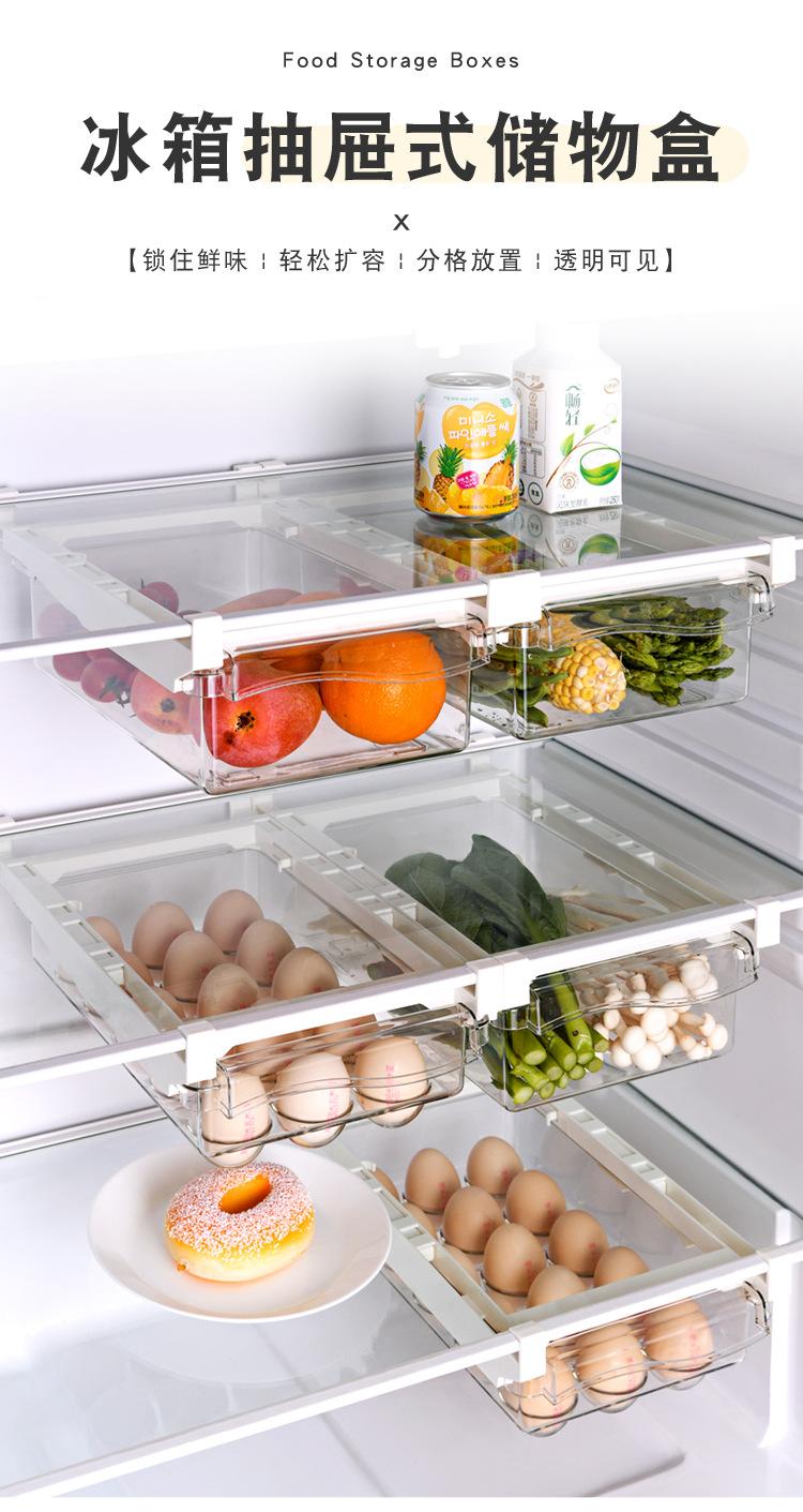 Caja de almacenamiento colgante para refrigerador, cajón para alimentos de cocina, caja de almacenamiento de alimentos de grado alimenticio, caja de almacenamiento de alimentos congelados, tipo cajón