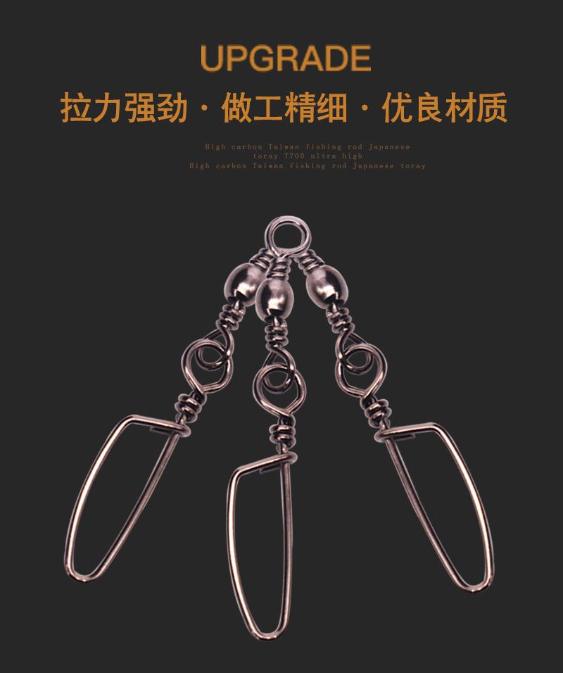 El anzuelo de tres garras apunta hacia arriba y se divide equitativamente en el mango del ancla a 120 grados. Tiene una anilla en el extremo del mango para atar la línea. Es común en la pesca con pólvora en las regiones de Guangdong, Guangxi y Fujian. El principio de este método de pesca es similar al del anzuelo de ancla de dos patas, que se enganchan y capturan con dificultad. Además, este anzuelo también puede usarse para pescar con placa de cobre, ideal para capturar peces feroces como el corégono, el pez de la familia de los peces y el pez de la luciérnaga. Al pescar, opte por lanzar en rápidos y aguas con viento y oleaje fuertes, y utilice el carrete para recoger el sedal, utilizando el brillo de la placa de cobre para atraer al corégono o al pez de la luciérnaga que buscan alimento. Cuando el pez muerda el anzuelo, el pescador sentirá una clara tensión en la caña, que podrá levantar con fuerza para atraparlo.