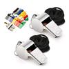 Silbato de árbitro, silbato de metal, silbato policial de acero inoxidable, silbato deportivo largo, artículos deportivos con cordón
