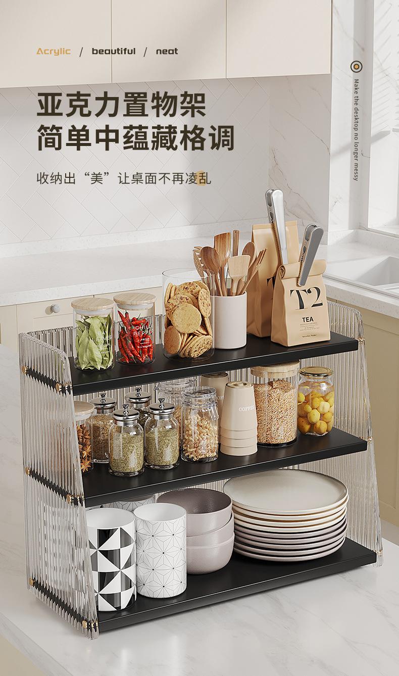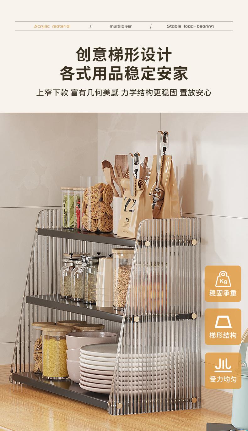 Estante de cocina, mesa, estante de almacenamiento de múltiples capas, vajilla multifuncional para el hogar, estante de almacenamiento de alta apariencia para condimentos y tazas
