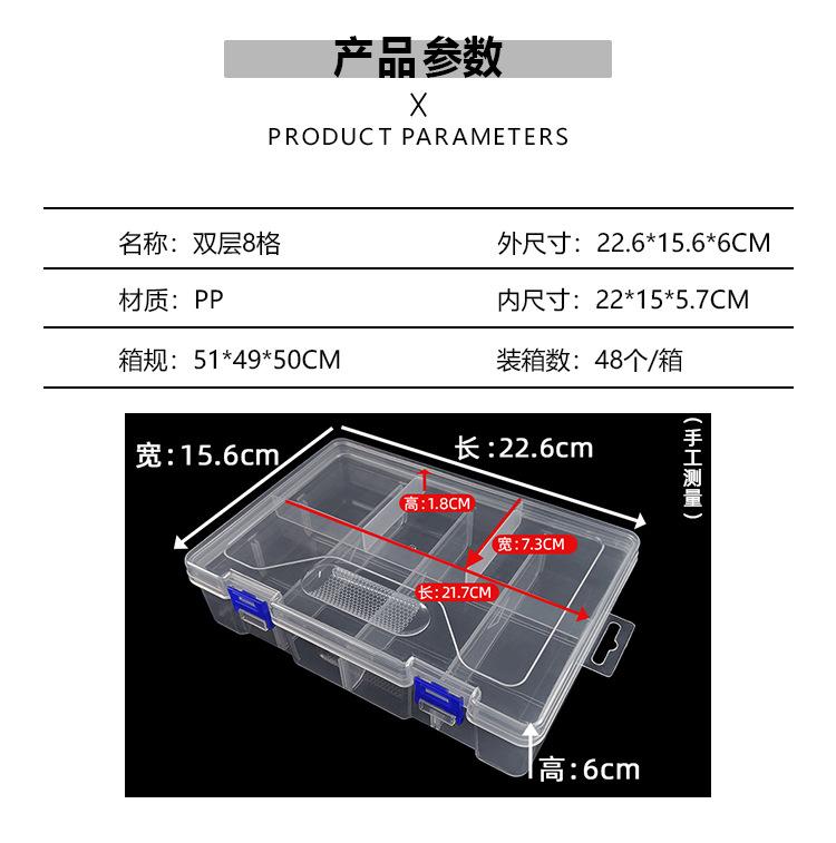 Caja de almacenamiento de plástico transparente extraíble de doble capa con 8 compartimentos para el embalaje y acabado de componentes electrónicos, juguetes, joyas, almacenamiento de aparejos de pesca.