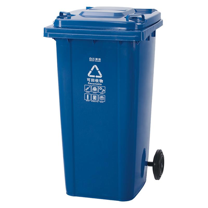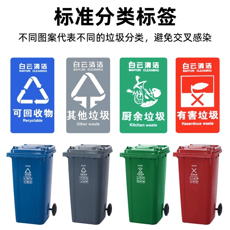 Blue (Recyclable Garbage), Green (kitchen waste), Grey (other rubbish), Red (hazardous waste)