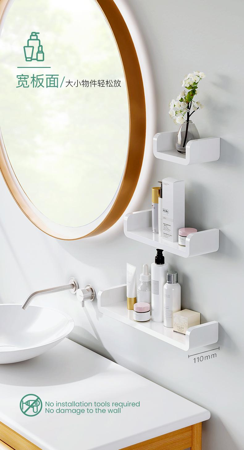 Estante de almacenamiento para baño sin perforaciones, estante para colgar en la pared, juego de estantes de almacenamiento para lavabo de baño