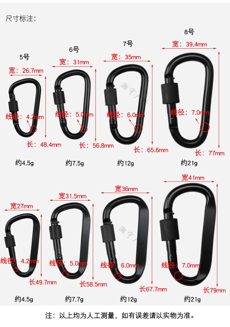 Compra Mosquetón tipo D con cerradura, de aleación de aluminio, color negro, para mochila, para exteriores, con cierre rápido y plano en forma de D, para escalada al por mayor en Joom.pro