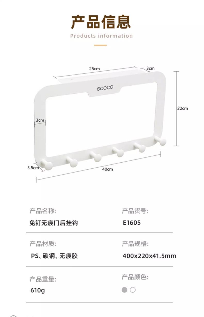 Gancho para colgar detrás de la puerta, colgador de pared para puerta, gancho para abrigo, perchero de almacenamiento, gancho para ropa sin costuras ni perforaciones