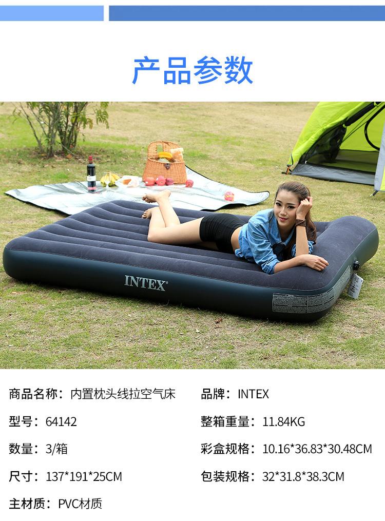 INTEX64142 - Colchón inflable de aire con doble almohada incorporada, colchón plegable portátil para acampar al aire libre
